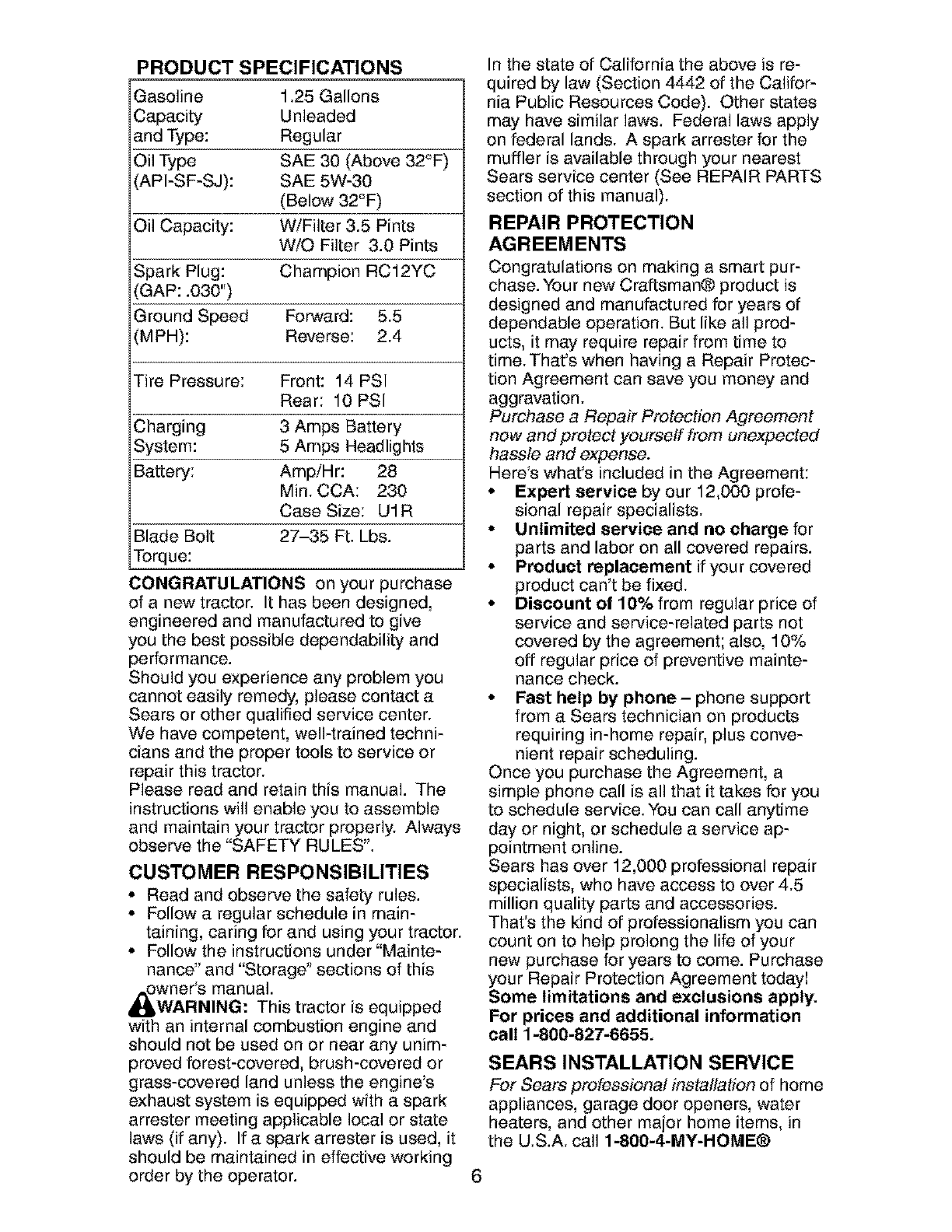 CRAFTSMAN Lawn, Tractor Manual L0307083 CRAFTSMAN Lawn, Tractor Owner's Manual, CRAFTSMAN Lawn, Tractor installation guides