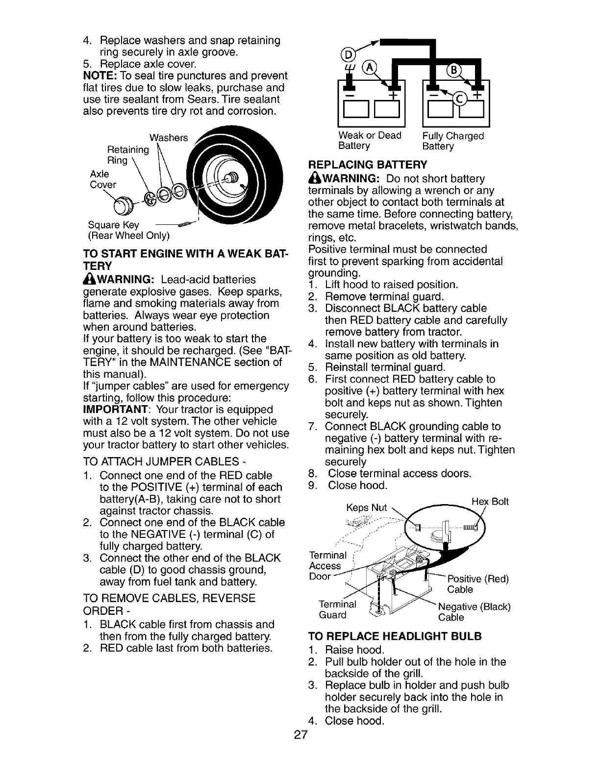 battery will not hold a charge, Sears will replace the battery at no charge. During the