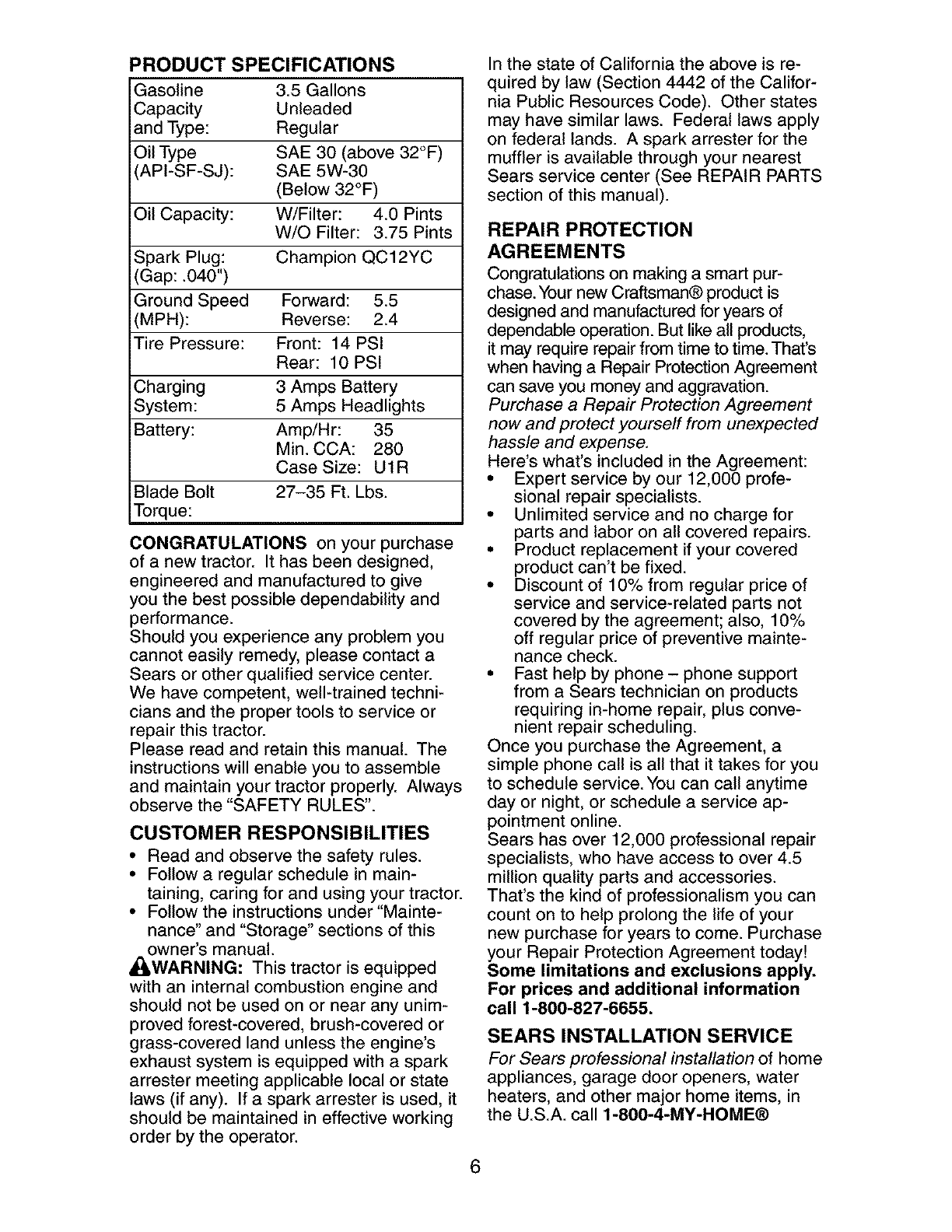 CRAFTSMAN Lawn, Tractor Manual L0305006 CRAFTSMAN Lawn, Tractor Owner's Manual, CRAFTSMAN Lawn, Tractor installation guides