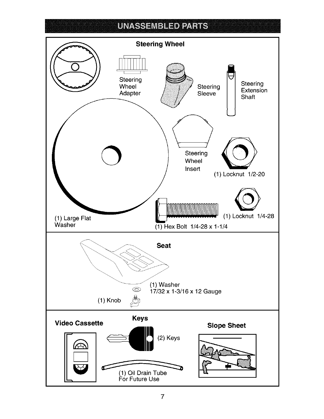blades, spark plugs, air cleaners, belts, and oil filters.
