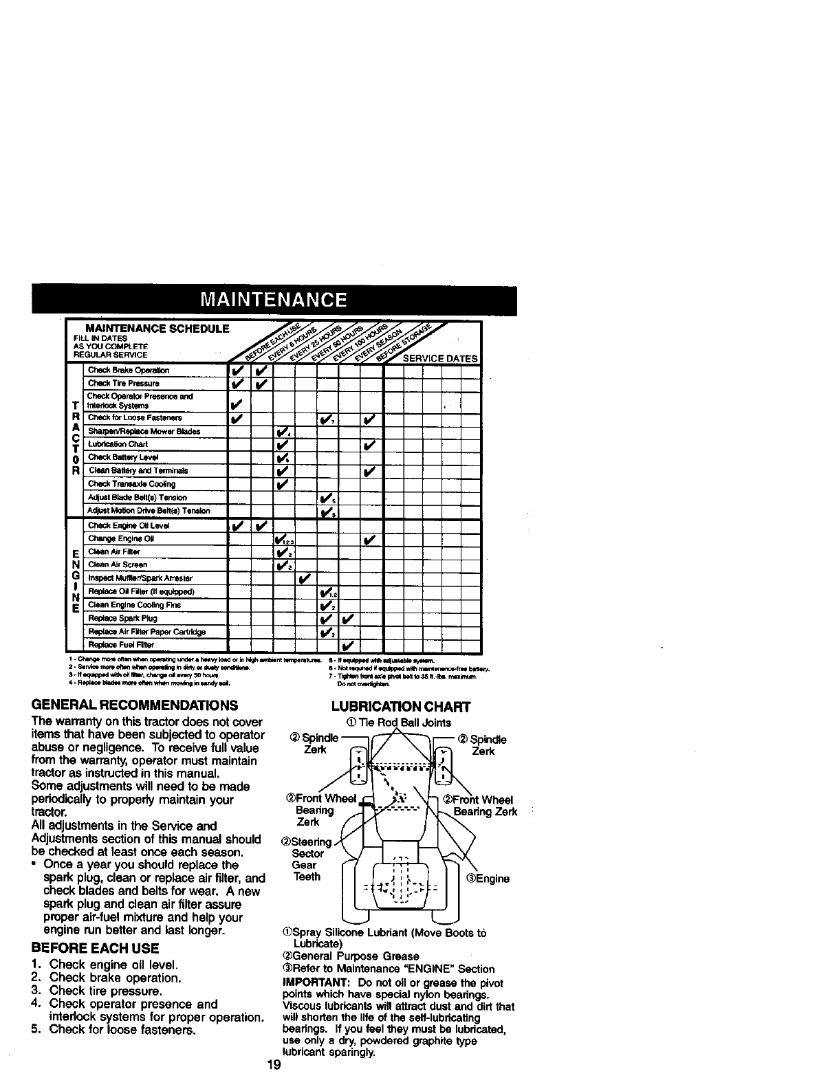 maintained,lubricatedand tuned up accordingto the instructionsin the owner's