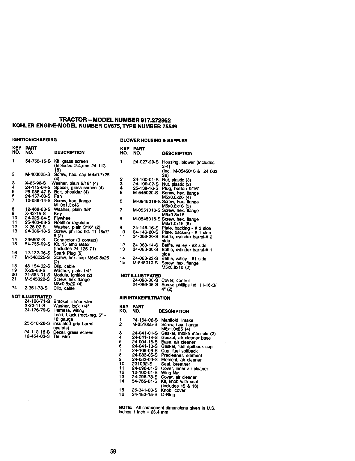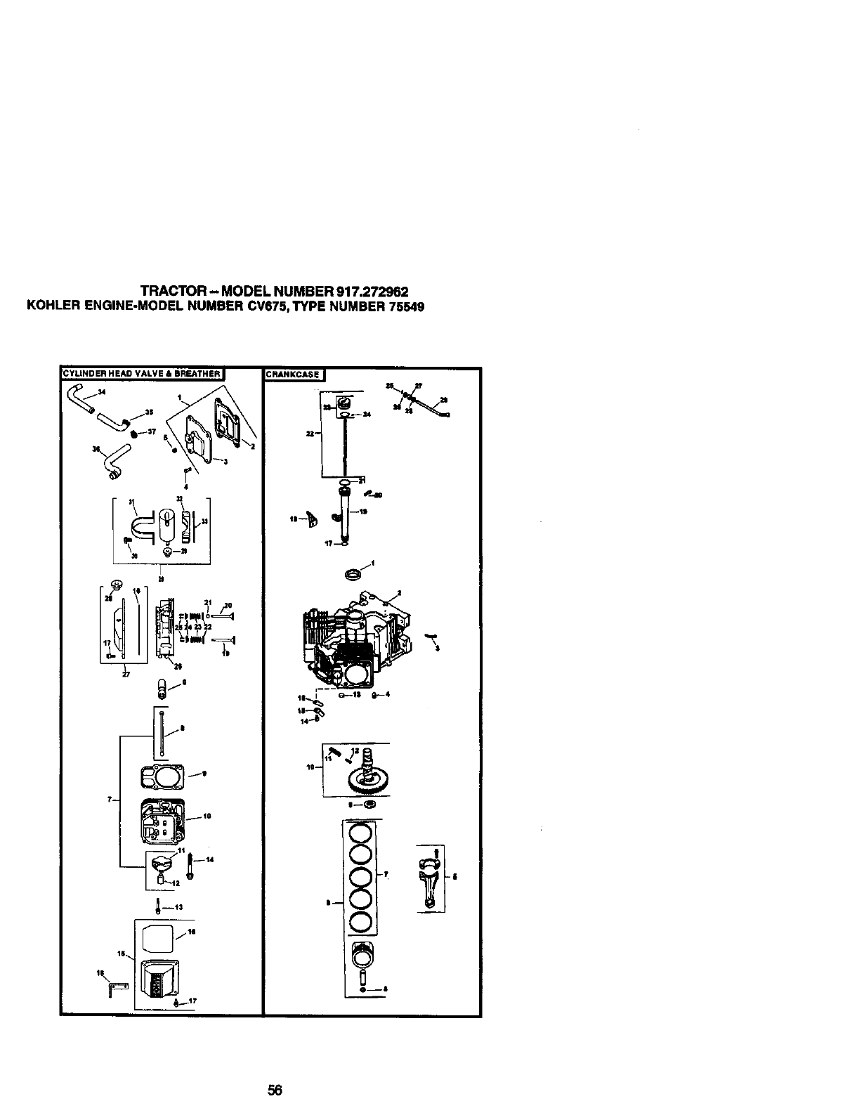 KOHLER ENGINE-MODEL NUMBER CV675,TYPE NUMBER 75549