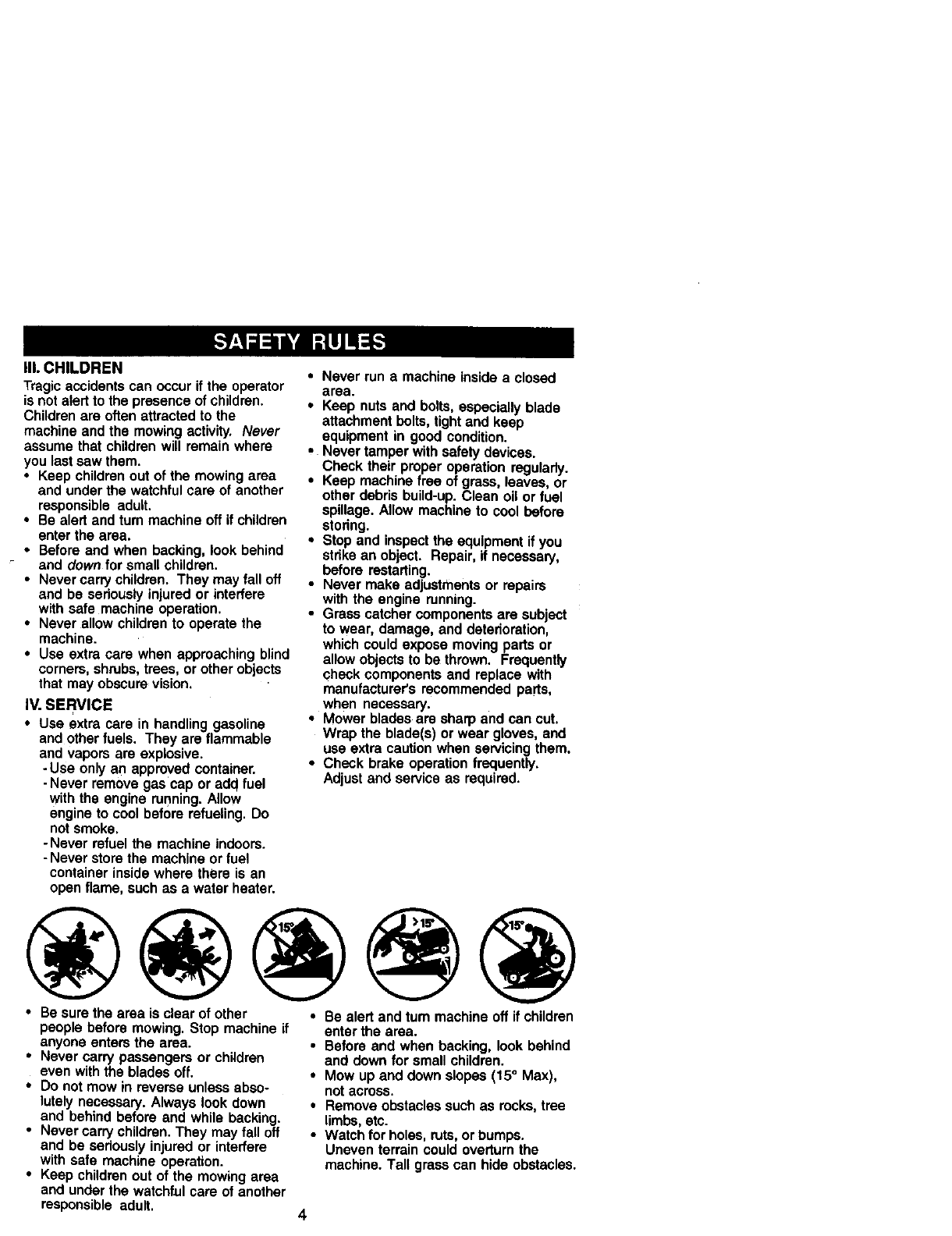 propergrade and amount of engineoil,failure to keep the deck clearof flammable