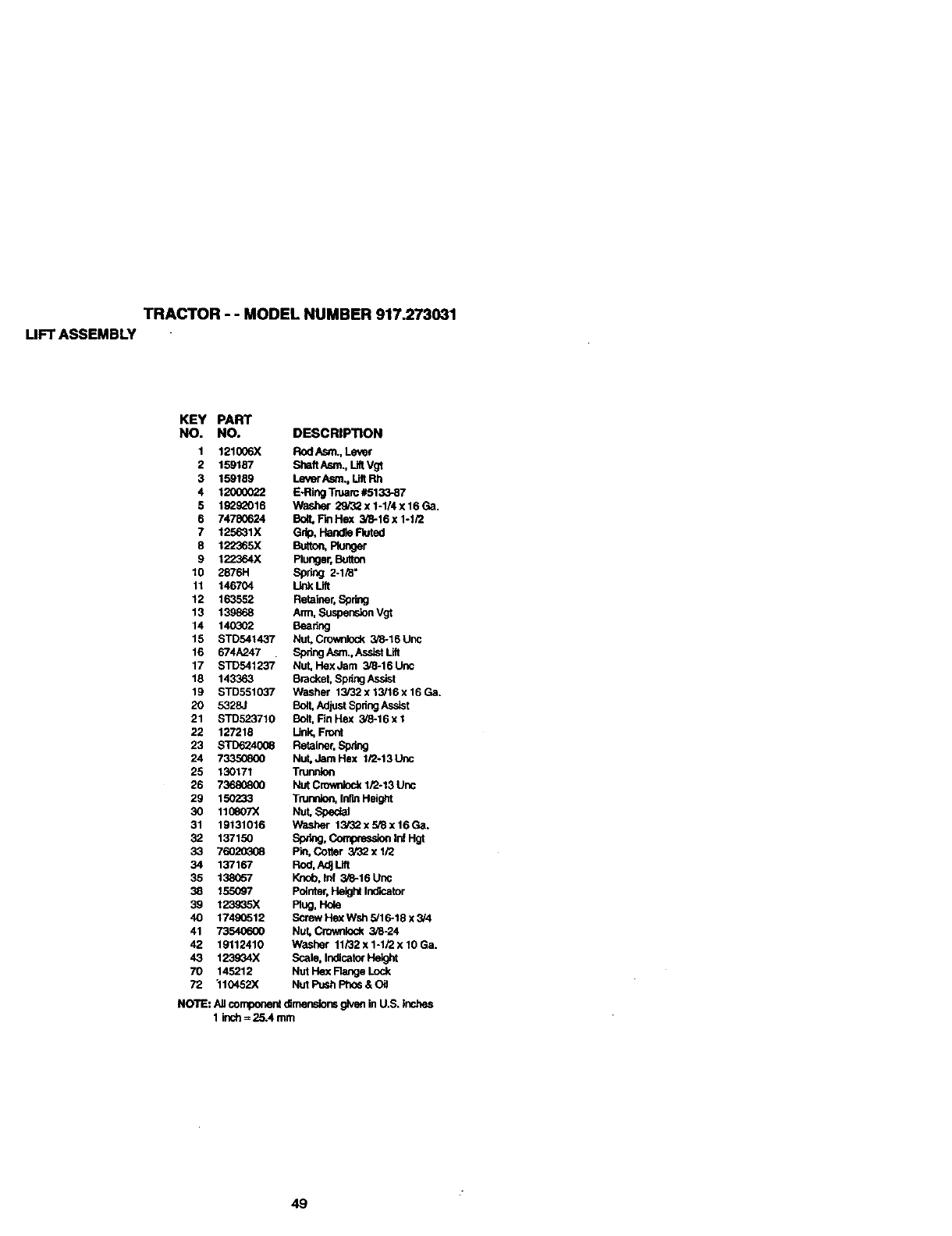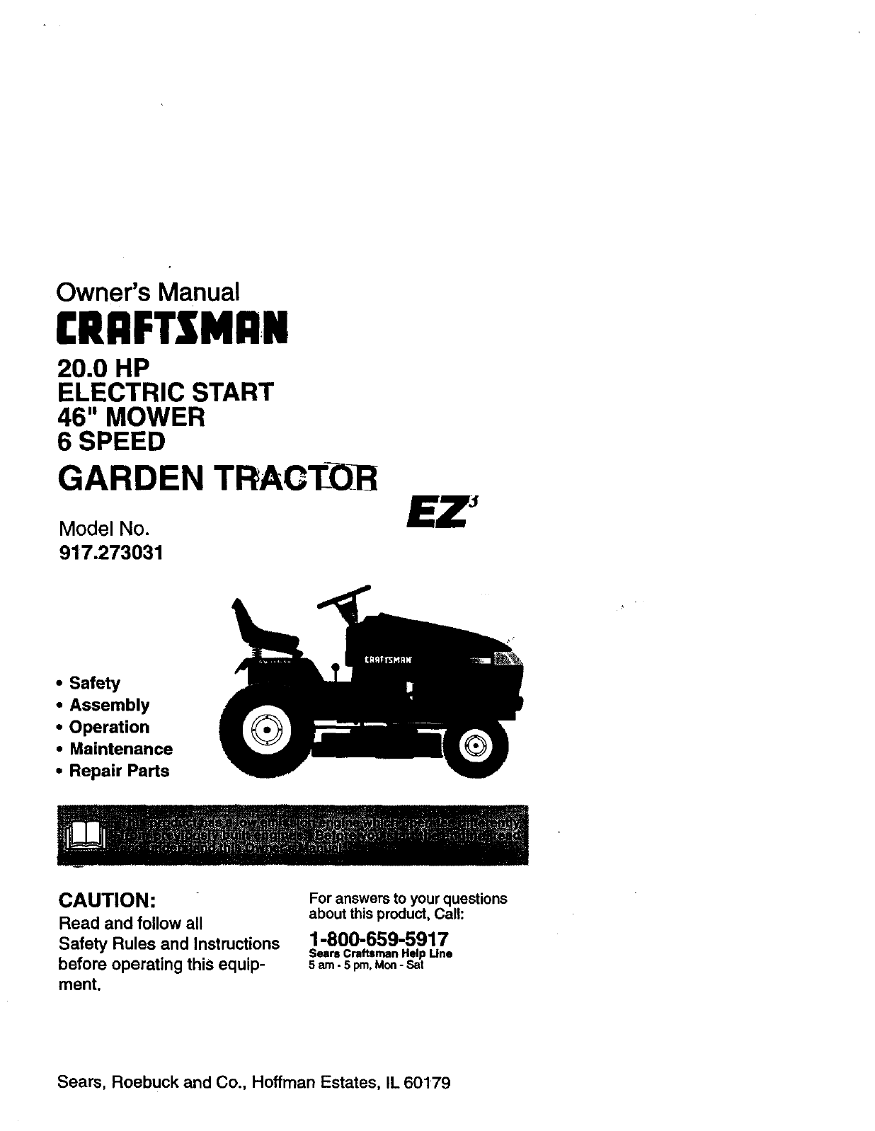 User Manual: Craftsman 917273031 917273031 CRAFTSMAN TRACTOR - Manuals and Guides View the owners manual for your CRAFTSMAN TRACTOR #917273031. Home:Lawn & Garden Parts:Craftsman Parts:Craftsman TRACTOR Manual