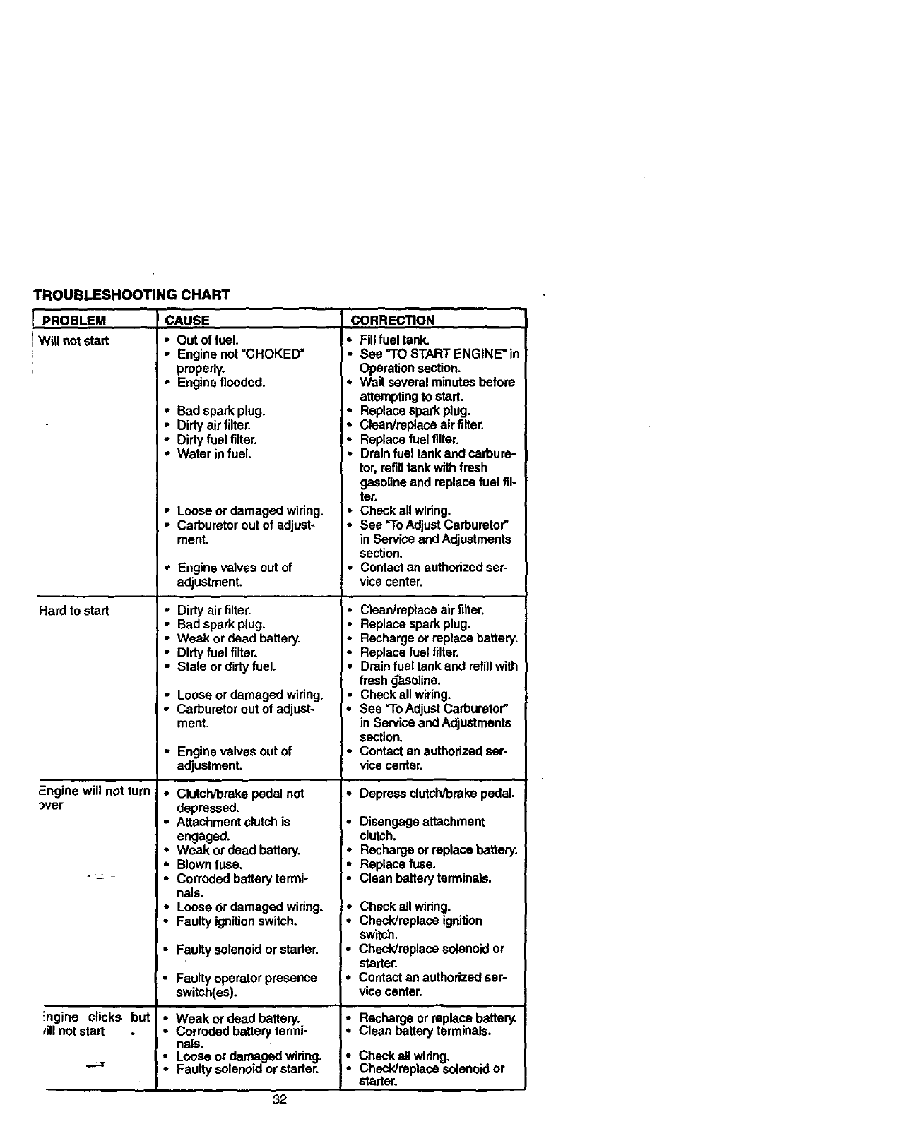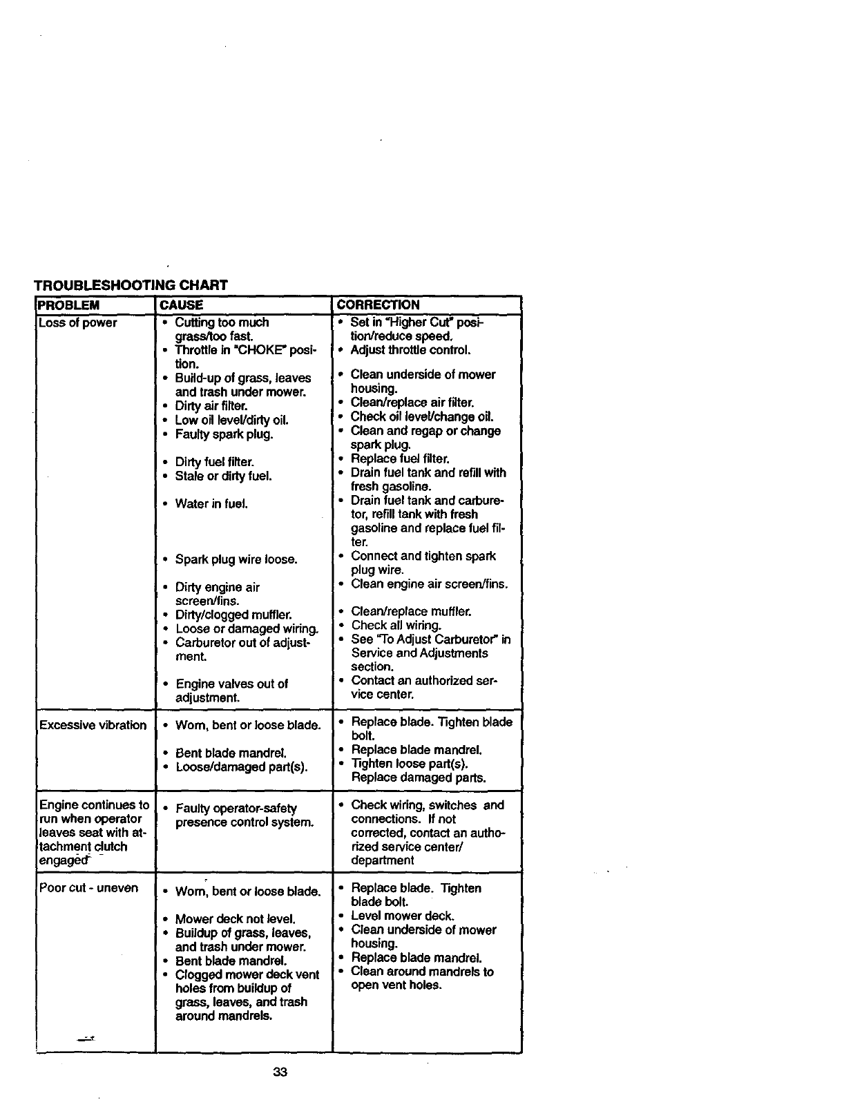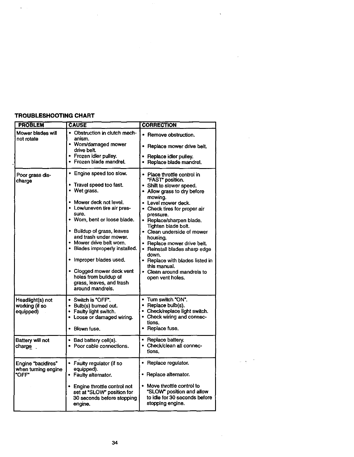 •Repairs necessary because of operator abuse, negligence, improper storage or acci-