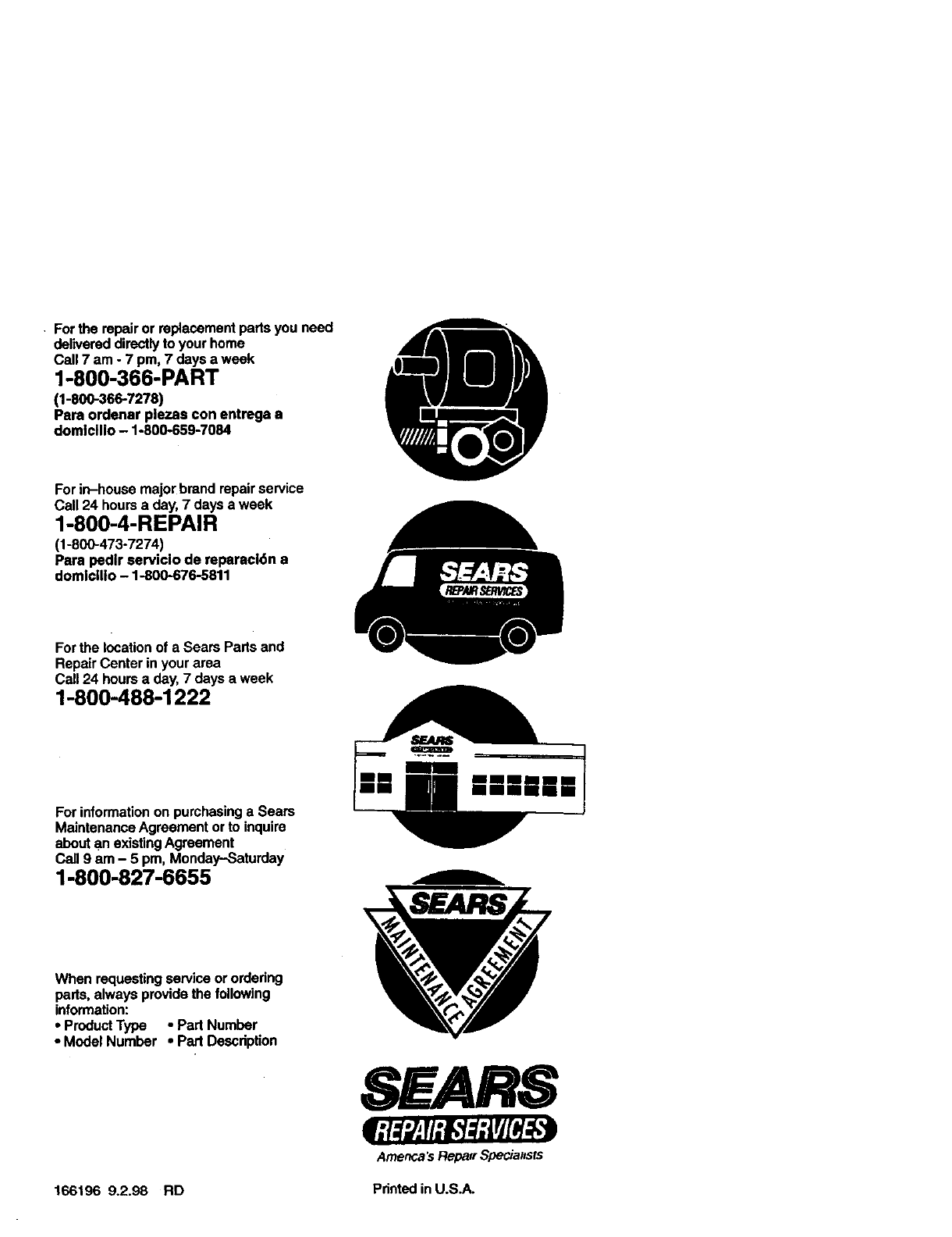 166196 9.2.98 RD Printed in U.S.A.