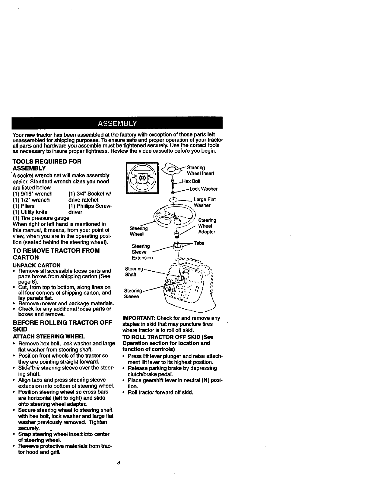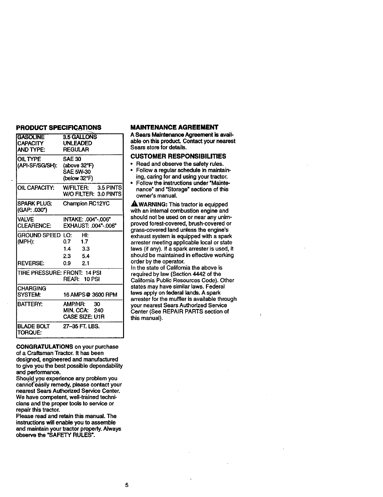 date of purchase, warranty service is available by taking your Craftsman riding equip-
