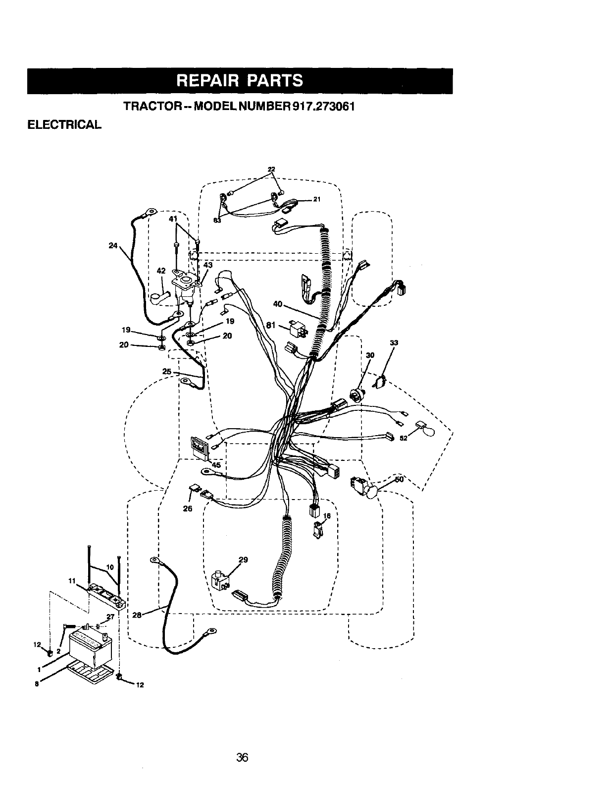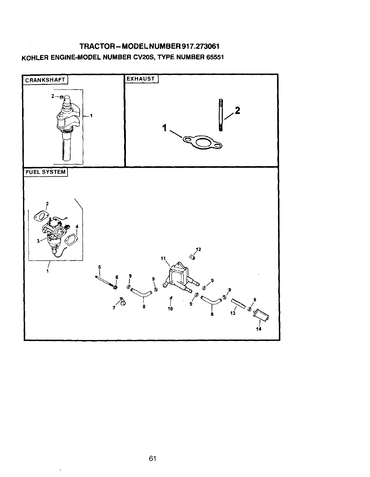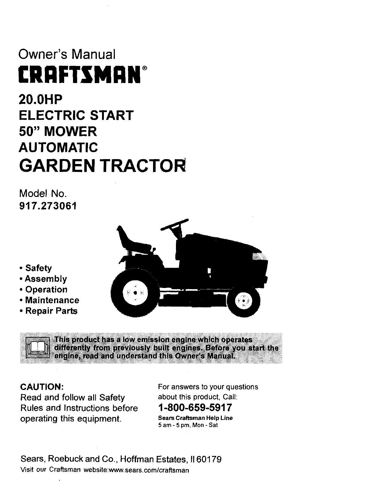 User Manual: Craftsman 917273061 917273061 CRAFTSMAN GARDEN TRACTOR - Manuals and Guides View the owners manual for your CRAFTSMAN GARDEN TRACTOR #917273061. Home:Lawn & Garden Parts:Craftsman Parts:Craftsman GARDEN TRACTOR Manual