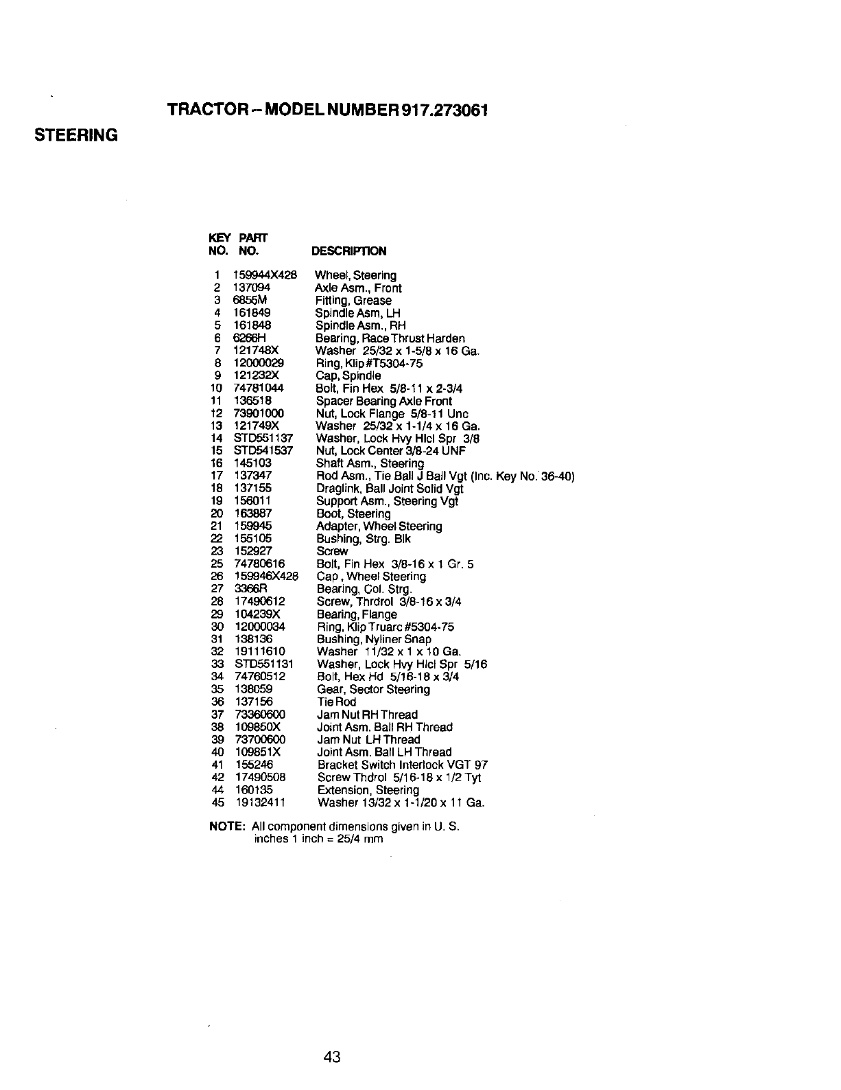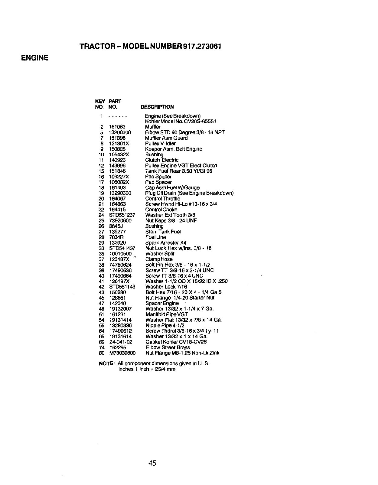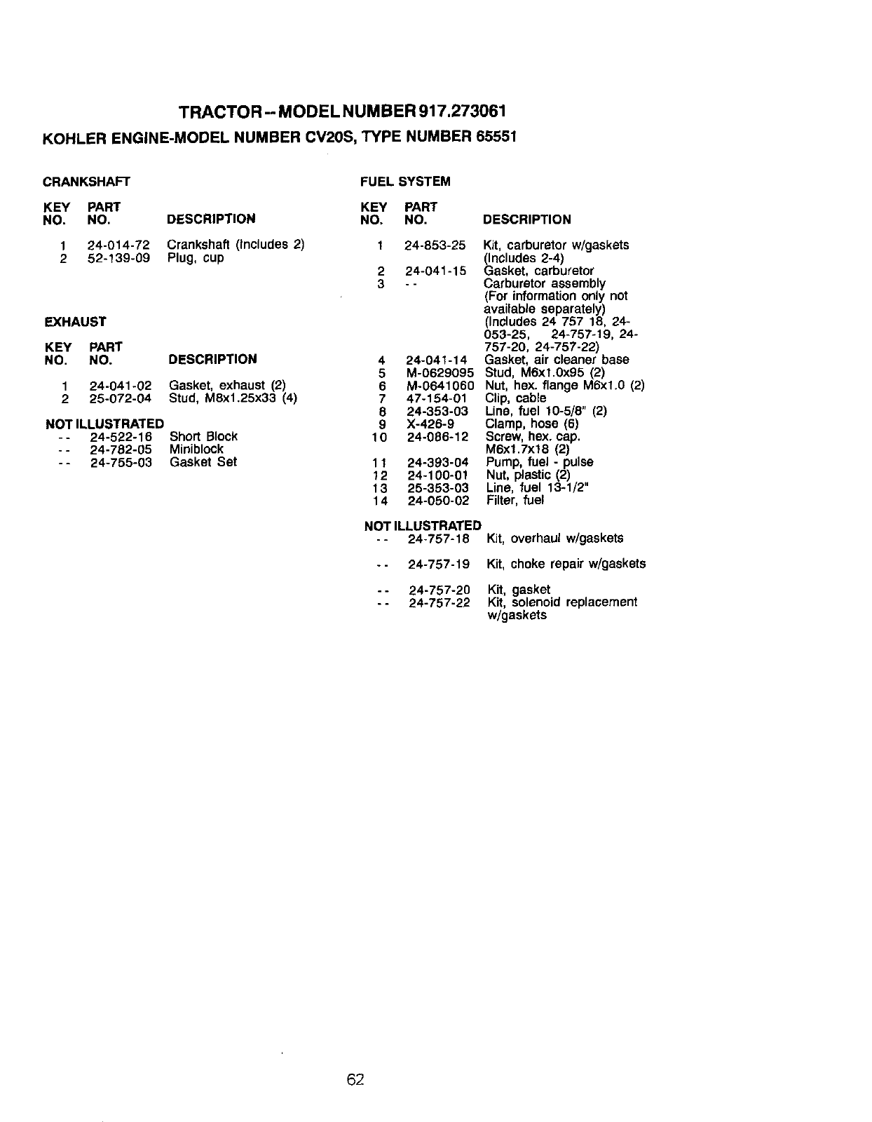 User Manual: Craftsman 917273061 917273061 CRAFTSMAN GARDEN TRACTOR - Manuals and Guides View the owners manual for your CRAFTSMAN GARDEN TRACTOR #917273061. Home:Lawn & Garden Parts:Craftsman Parts:Craftsman GARDEN TRACTOR Manual