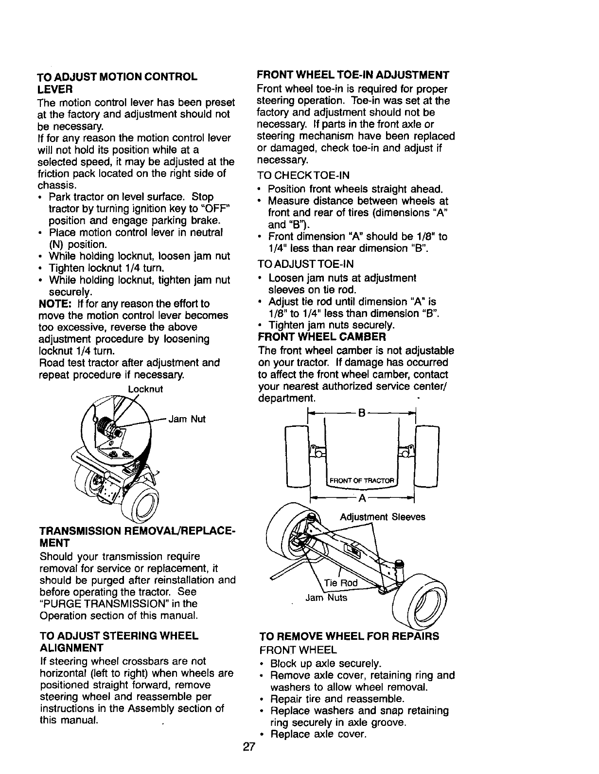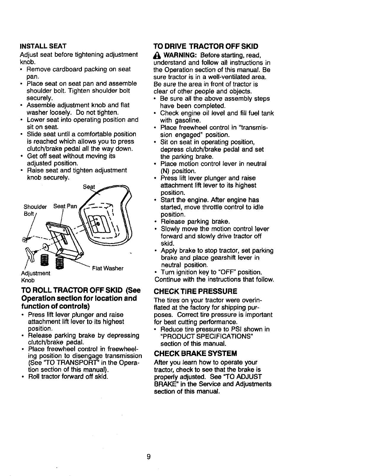 riding equipment to your nearest Sears Service Center. (In-home warranty service will