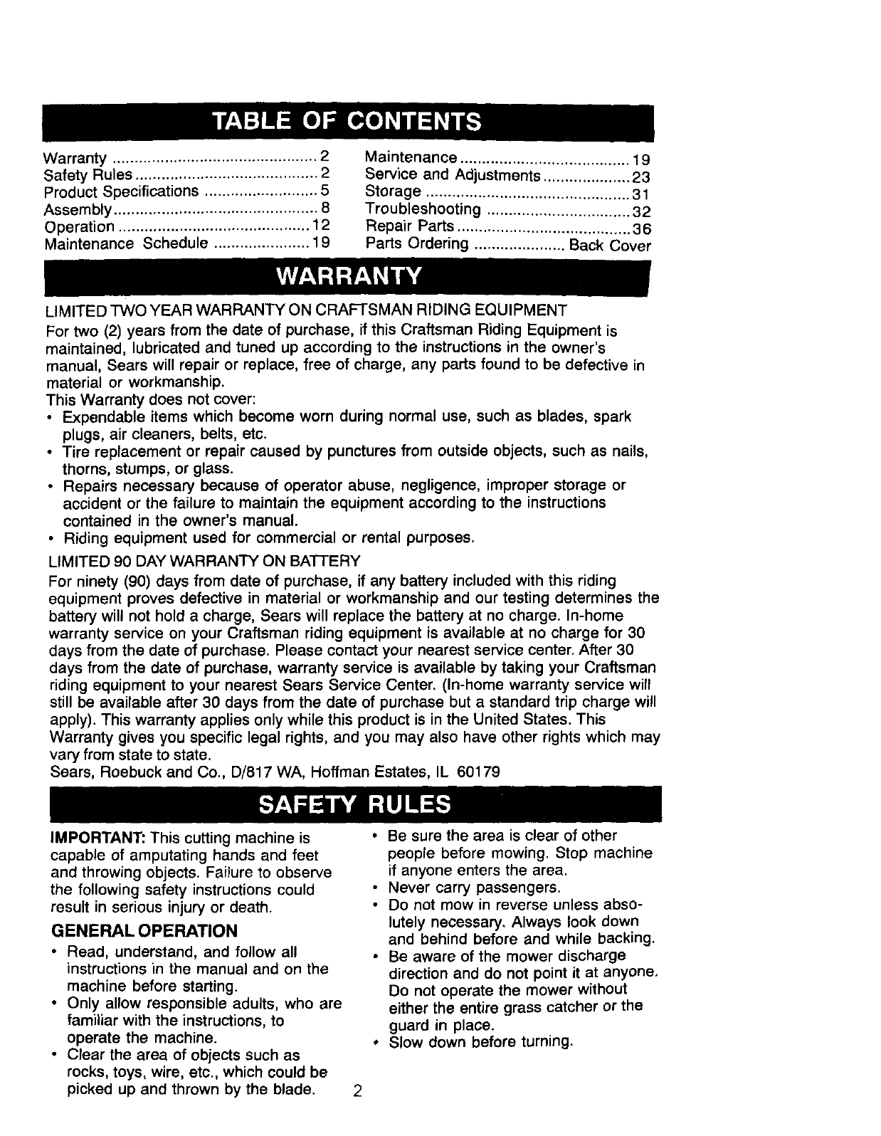 LIMITEDTWOYEARWARRANTYONCRAFTSMANRIDINGEQUIPMENT