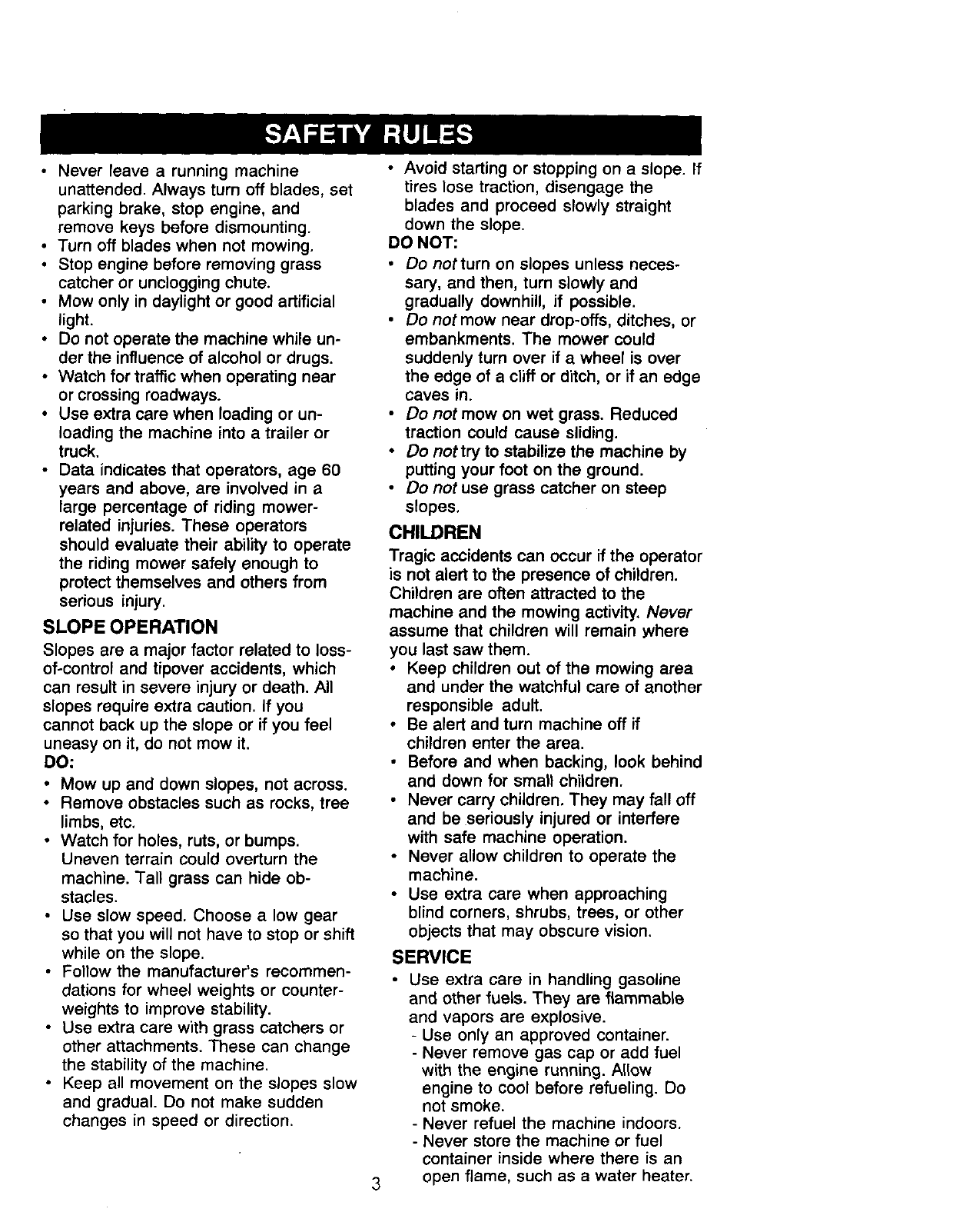 _!] /,_ Operate your Tractor up and down the face of slopes (not I