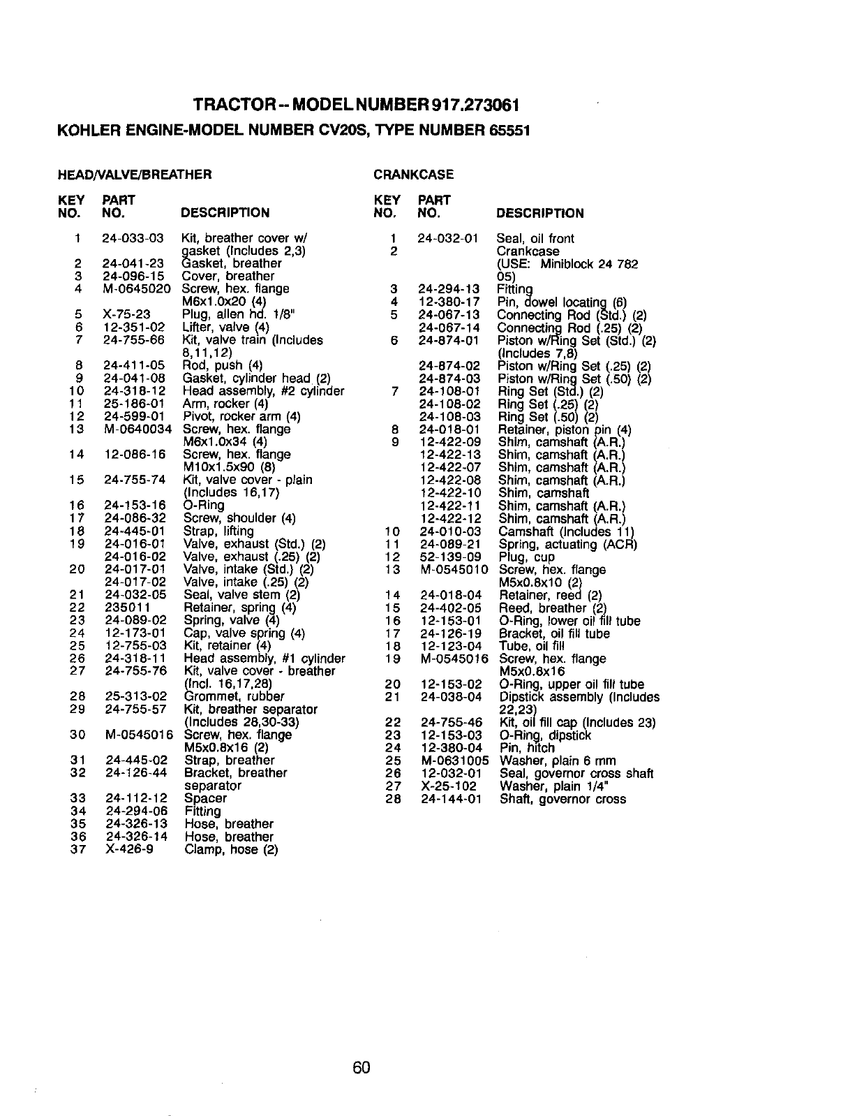 KOHLERENGINE-MODELNUMBERCV20S,TYPENUMBER65551