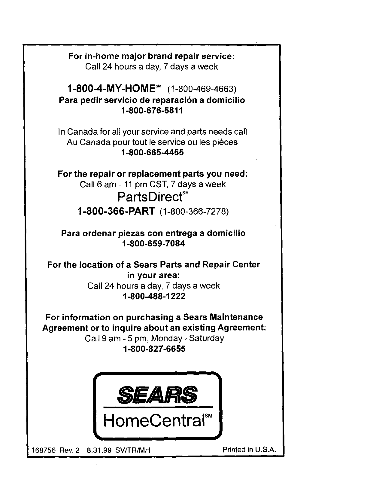 8.31.99 SV/TR/MH168756 Rev. 2 Printed in U.S.A.