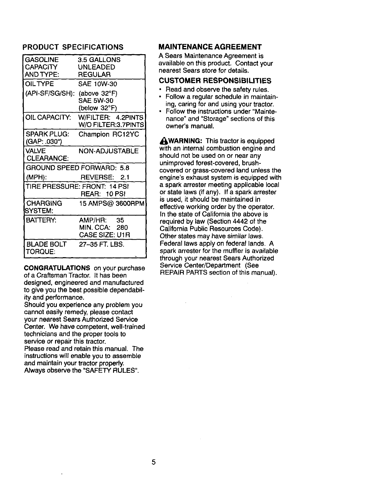 Craftsman 917273061 User Manual GARDEN TRACTOR Manuals And Guides L9910387