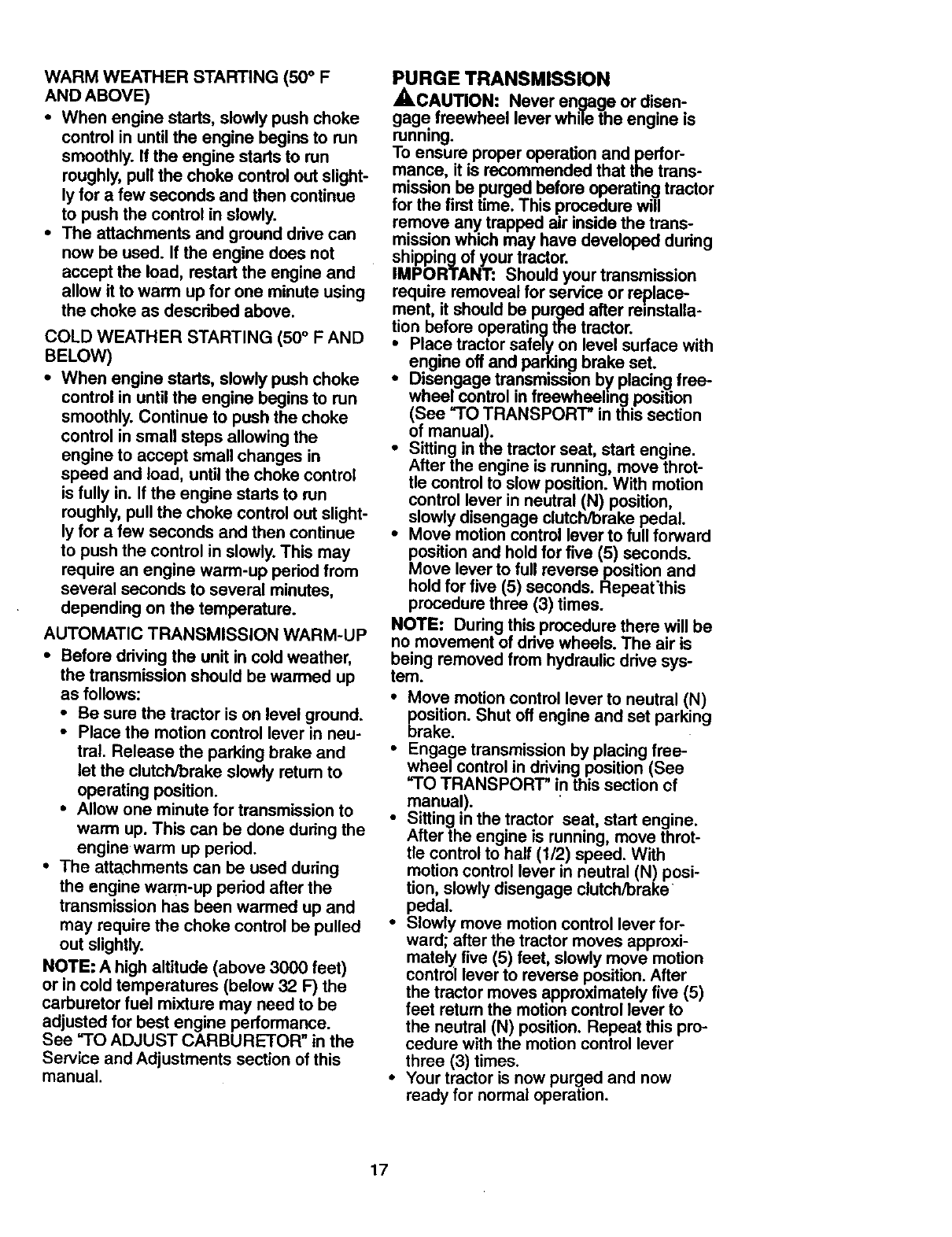 Craftsman 917273220 User Manual TRACTOR Manuals And Guides 98120028