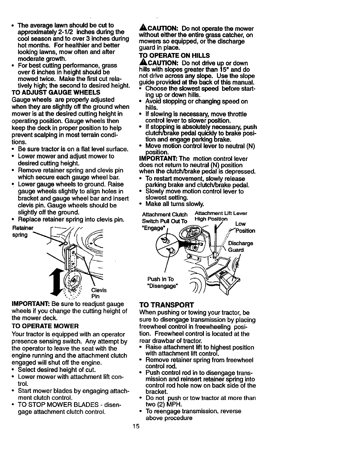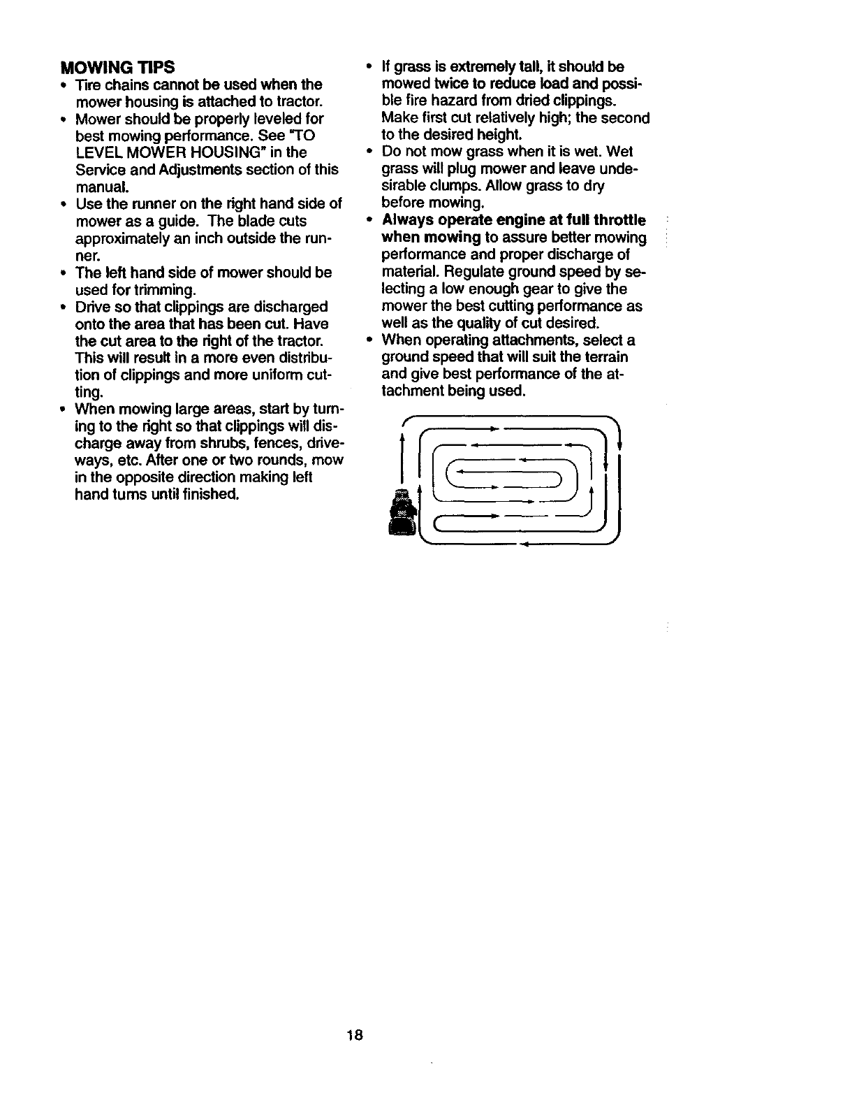 •Do not mow in reverse unless absolute-
