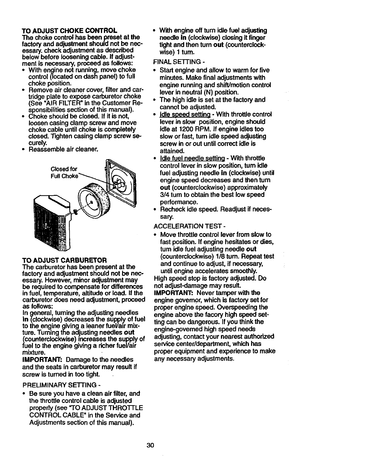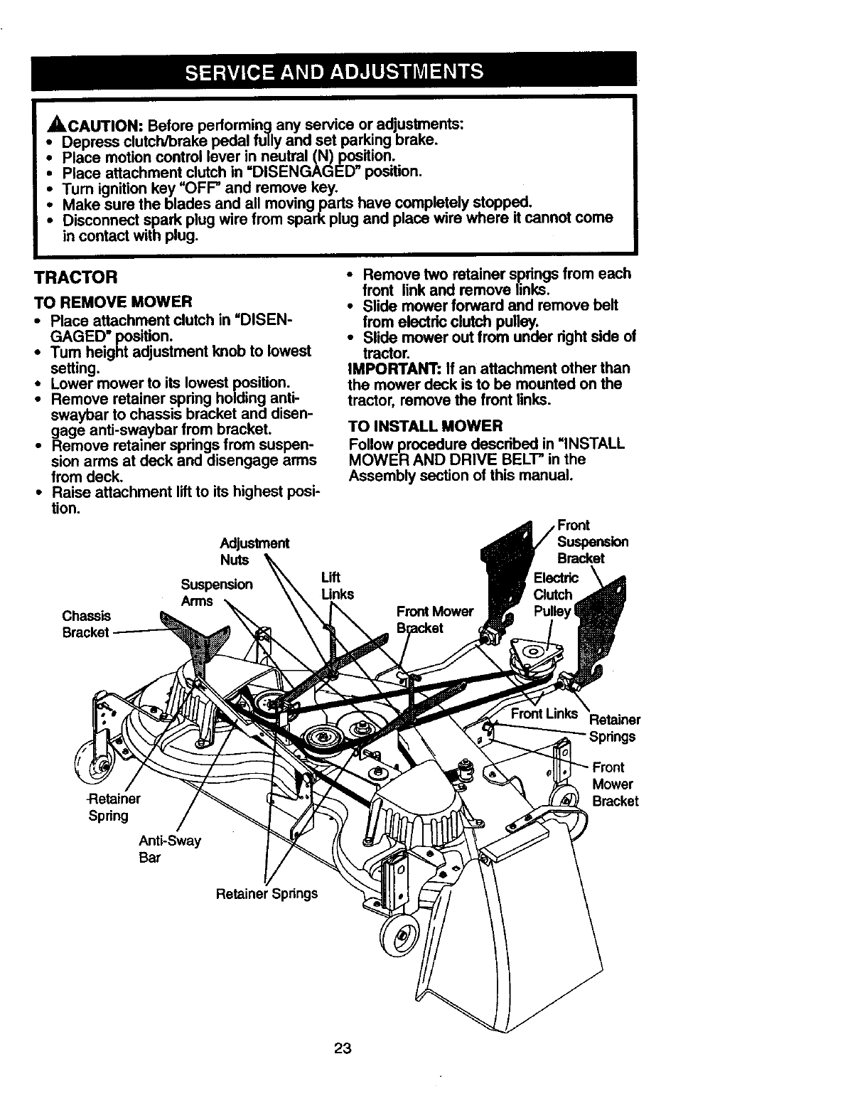 Service and Adjustments ...................... 23
