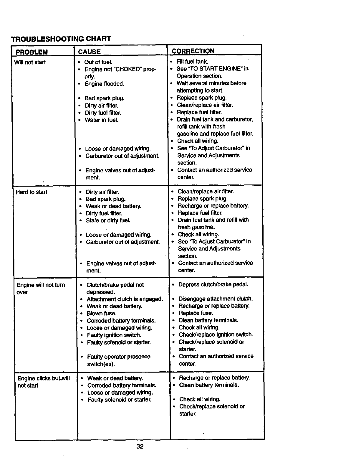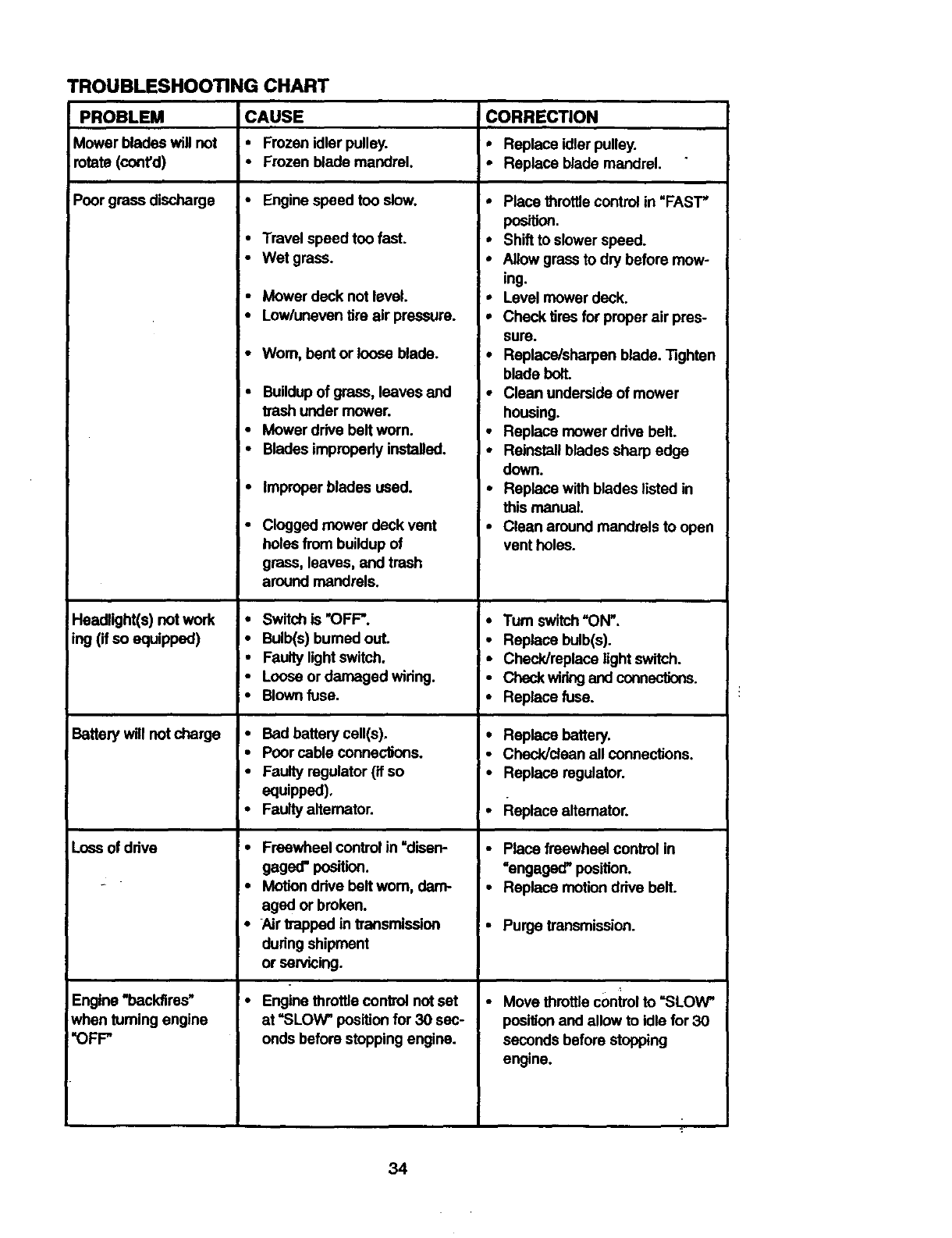 •Repairs necessary because of operator abuse, negligence, improper storage or acci-