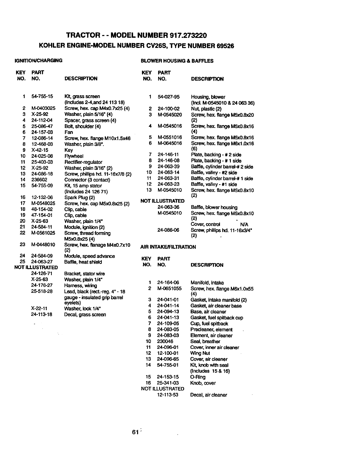 User Manual: Craftsman 917273220 917273220 CRAFTSMAN TRACTOR - Manuals and Guides View the owners manual for your CRAFTSMAN TRACTOR #917273220. Home:Lawn & Garden Parts:Craftsman Parts:Craftsman TRACTOR Manual
