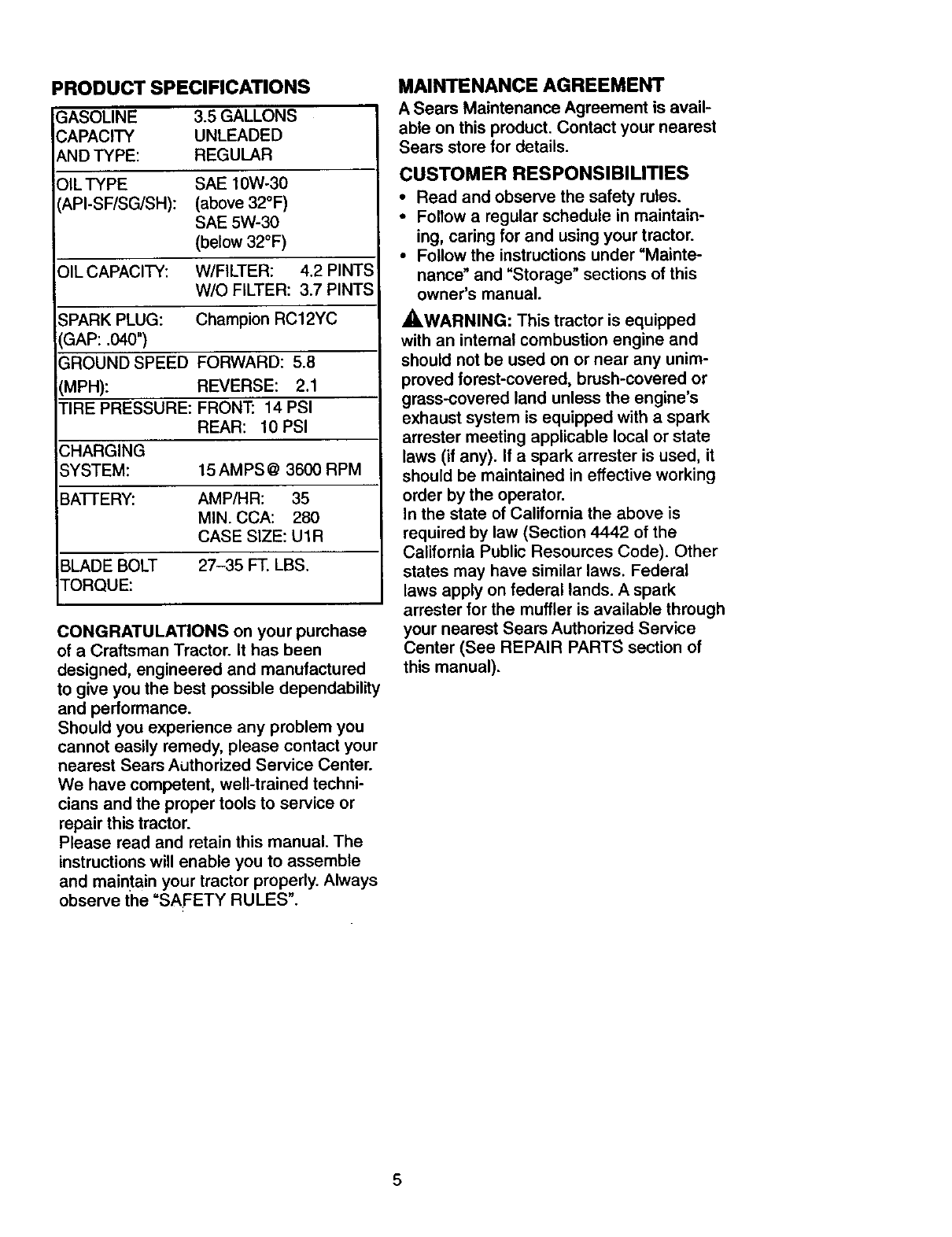 date of purchase, warranty service is available by taking your Craftsman ridingequip-