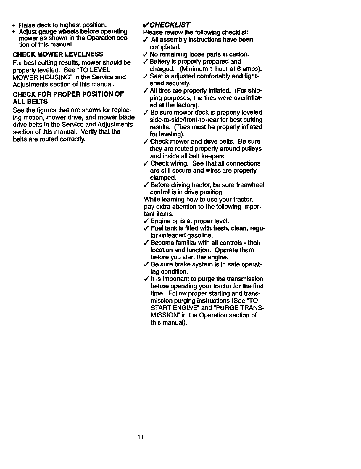 tended. Always turn off blades, set park-