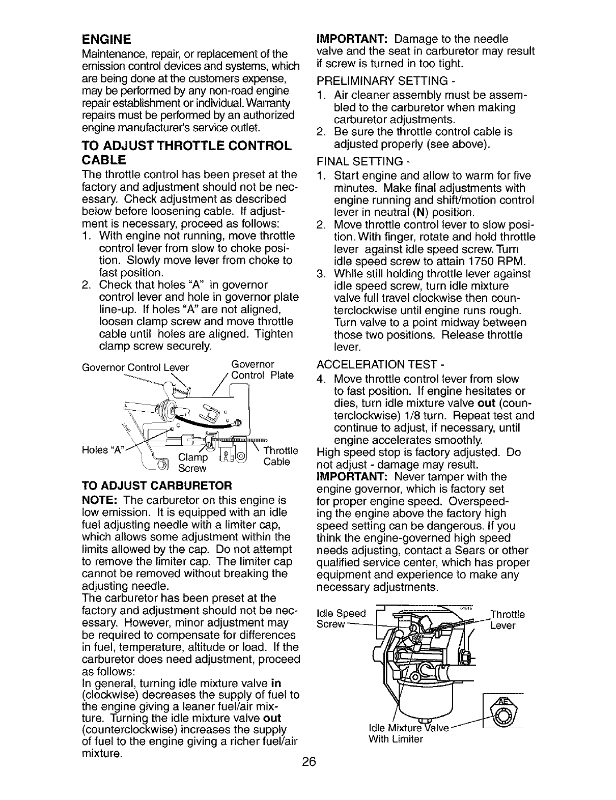 maintained, lubricated and tuned up according to the instructions in the owner's manual,