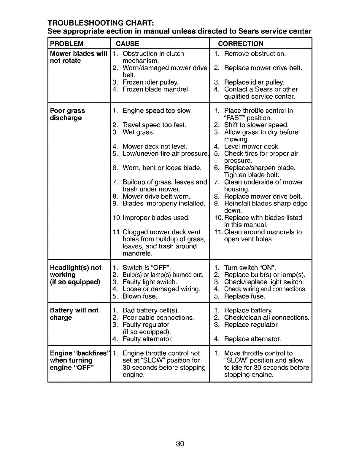 will not hold a charge, Sears will replace the battery at no charge. During the first 30