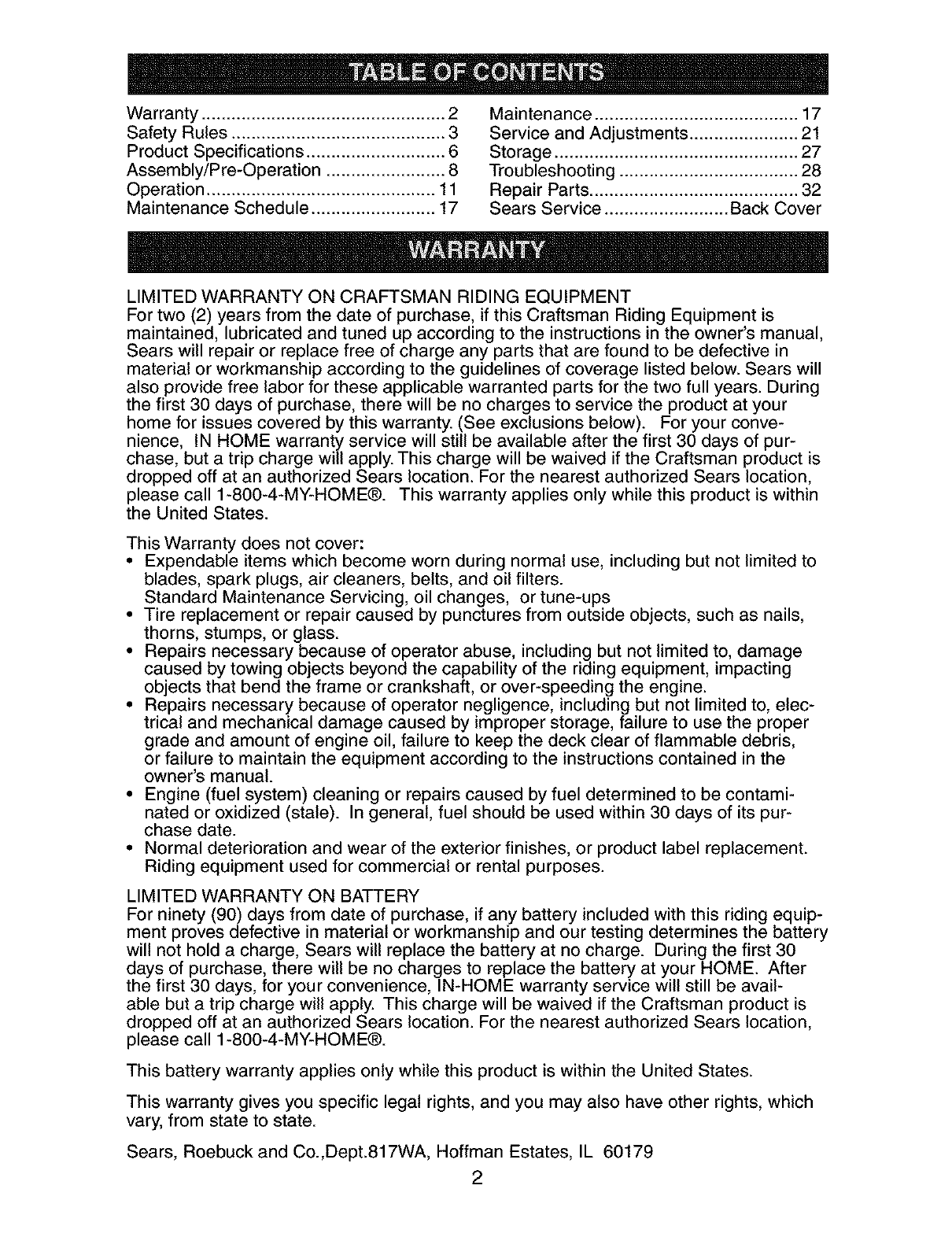 LIMITED WARRANTY ON CRAFTSMAN RIDING EQUIPMENT