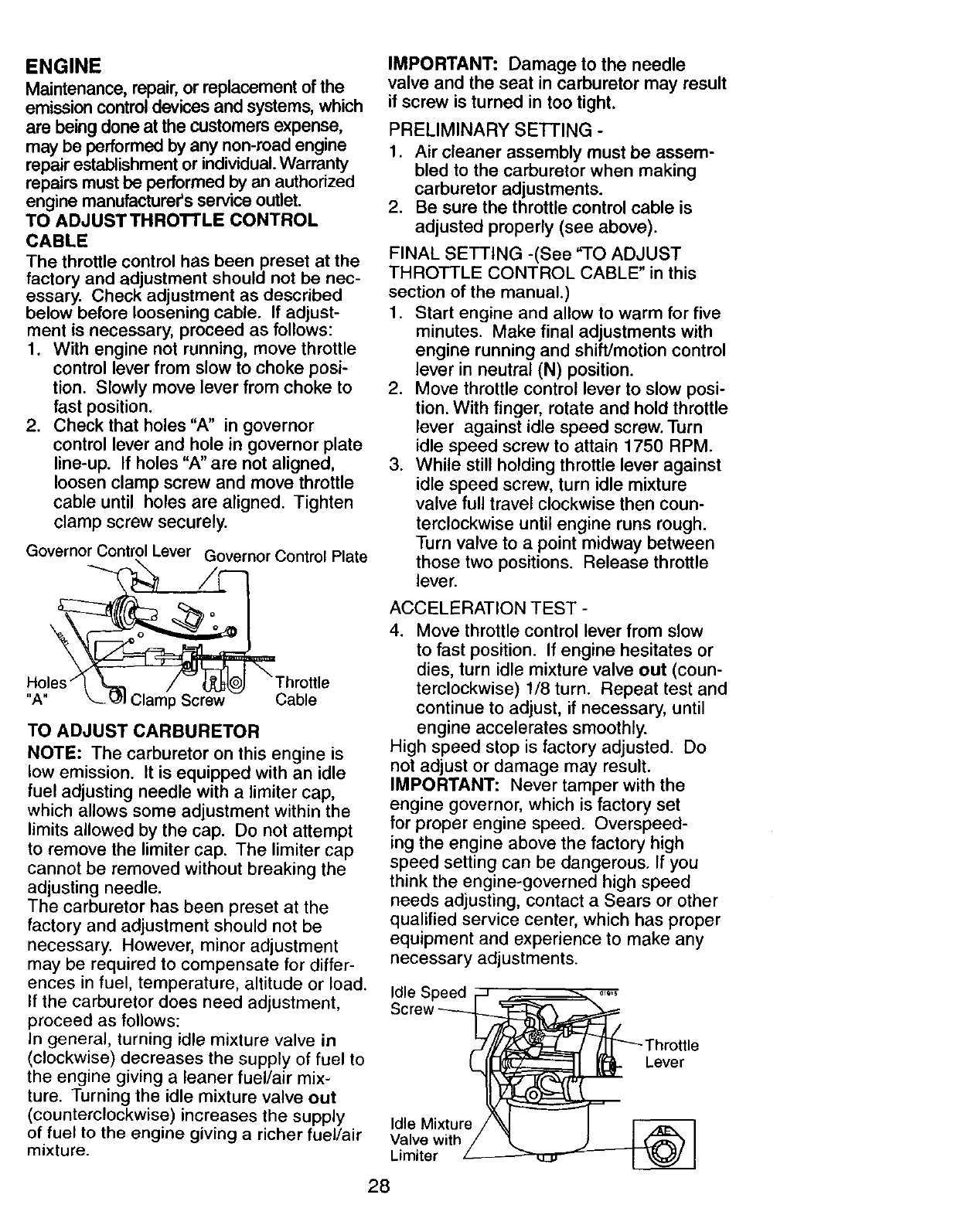 maintained, lubricated and tuned up according to the instructions in the owner's manual,