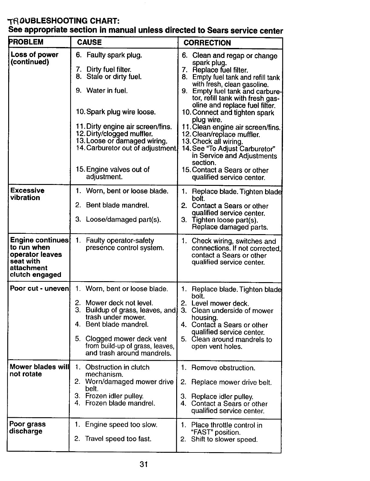 Sears will repair or replace free of charge any parts that are found to be defective in