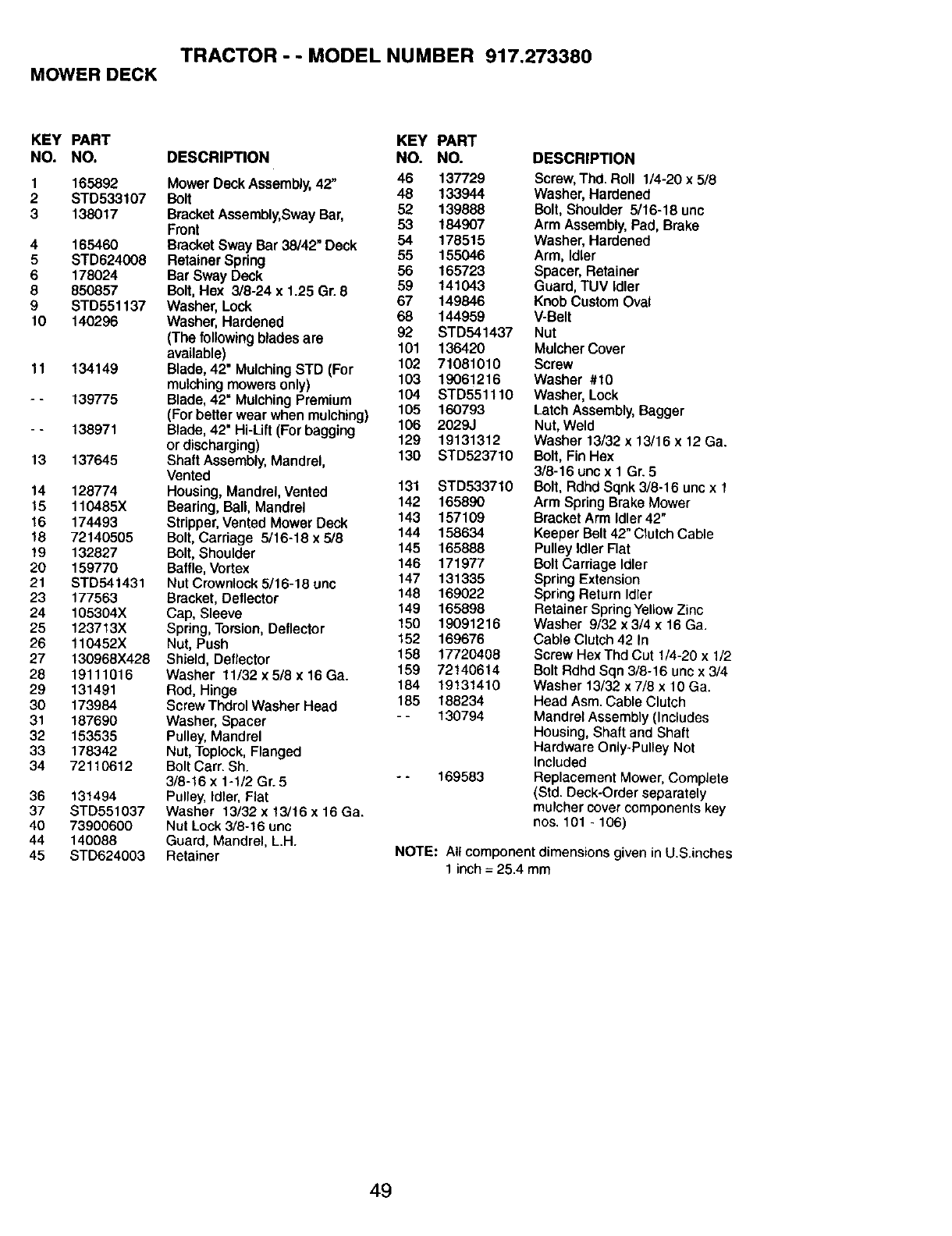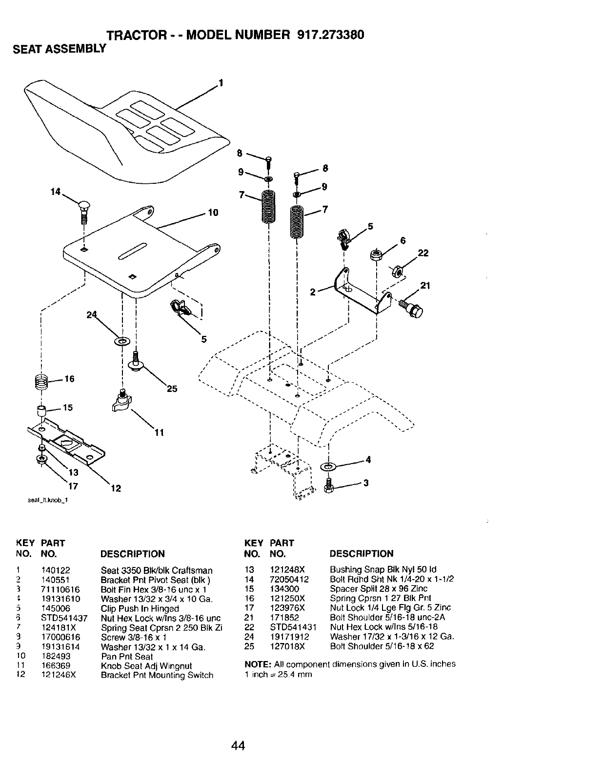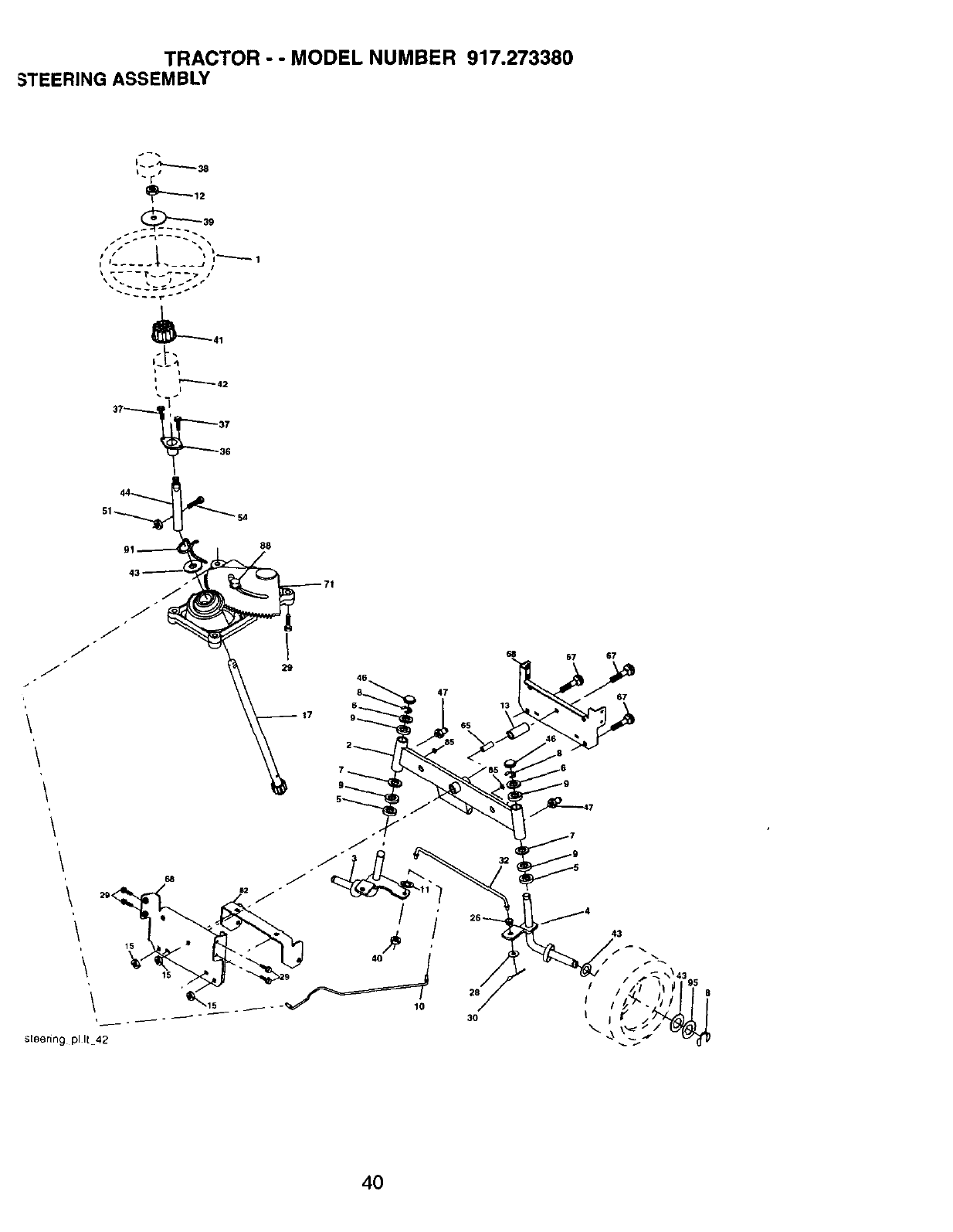User Manual: Craftsman 917273380 917273380 CRAFTSMAN LAWN TRACTOR - Manuals and Guides View the owners manual for your CRAFTSMAN LAWN TRACTOR #917273380. Home:Lawn & Garden Parts:Craftsman Parts:Craftsman LAWN TRACTOR Manual