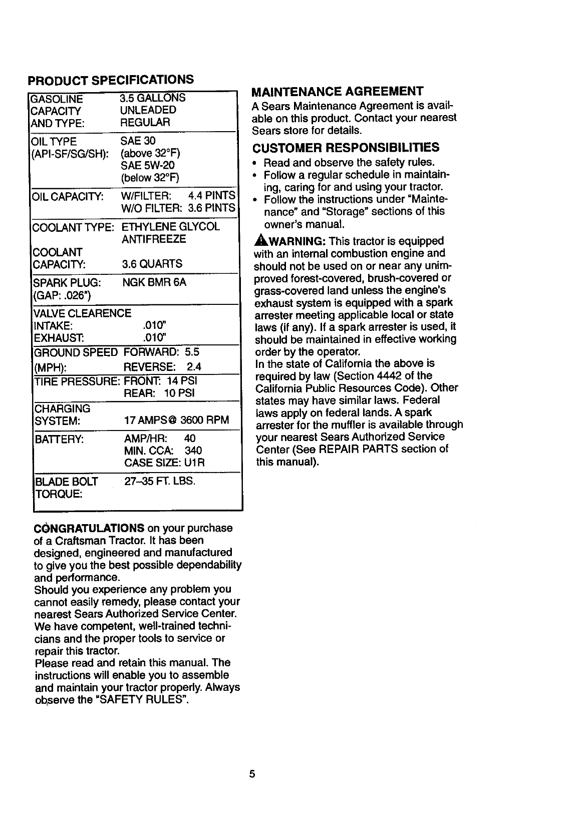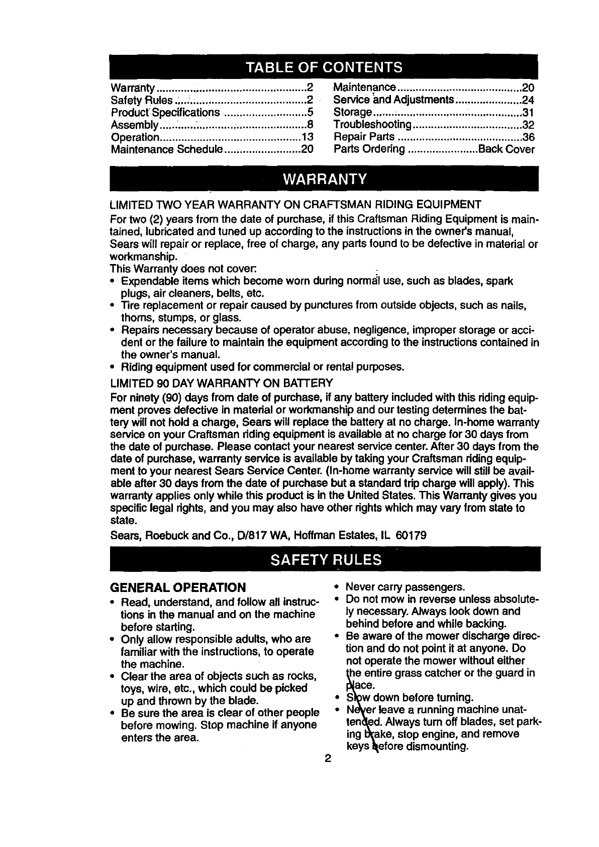 LIMITED TWO YEAR WARRANTY ON CRAFTSMAN RIDING EQUIPMENT