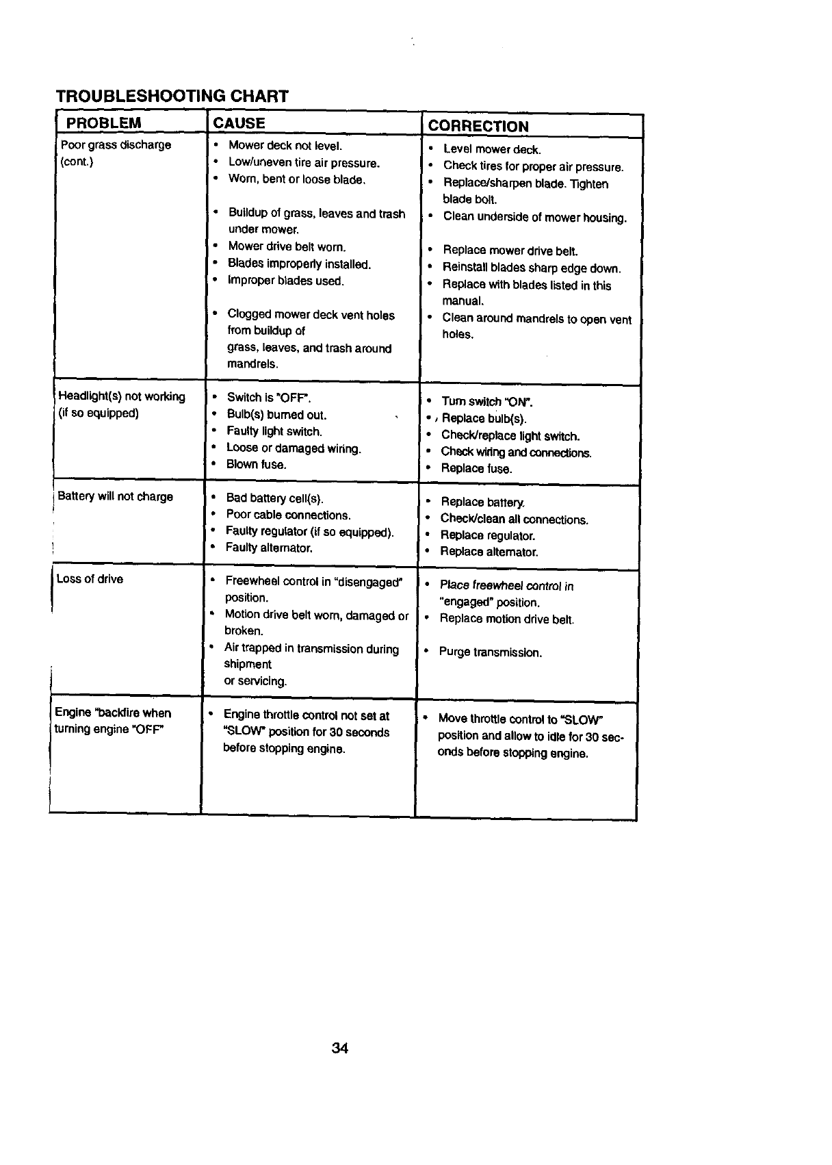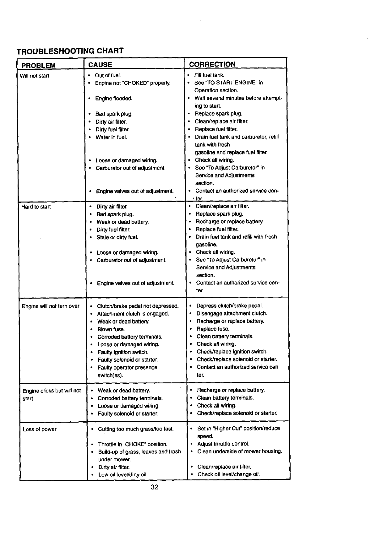 • Repairs necessary because of operator abuse, negligence, improper storage or acci-