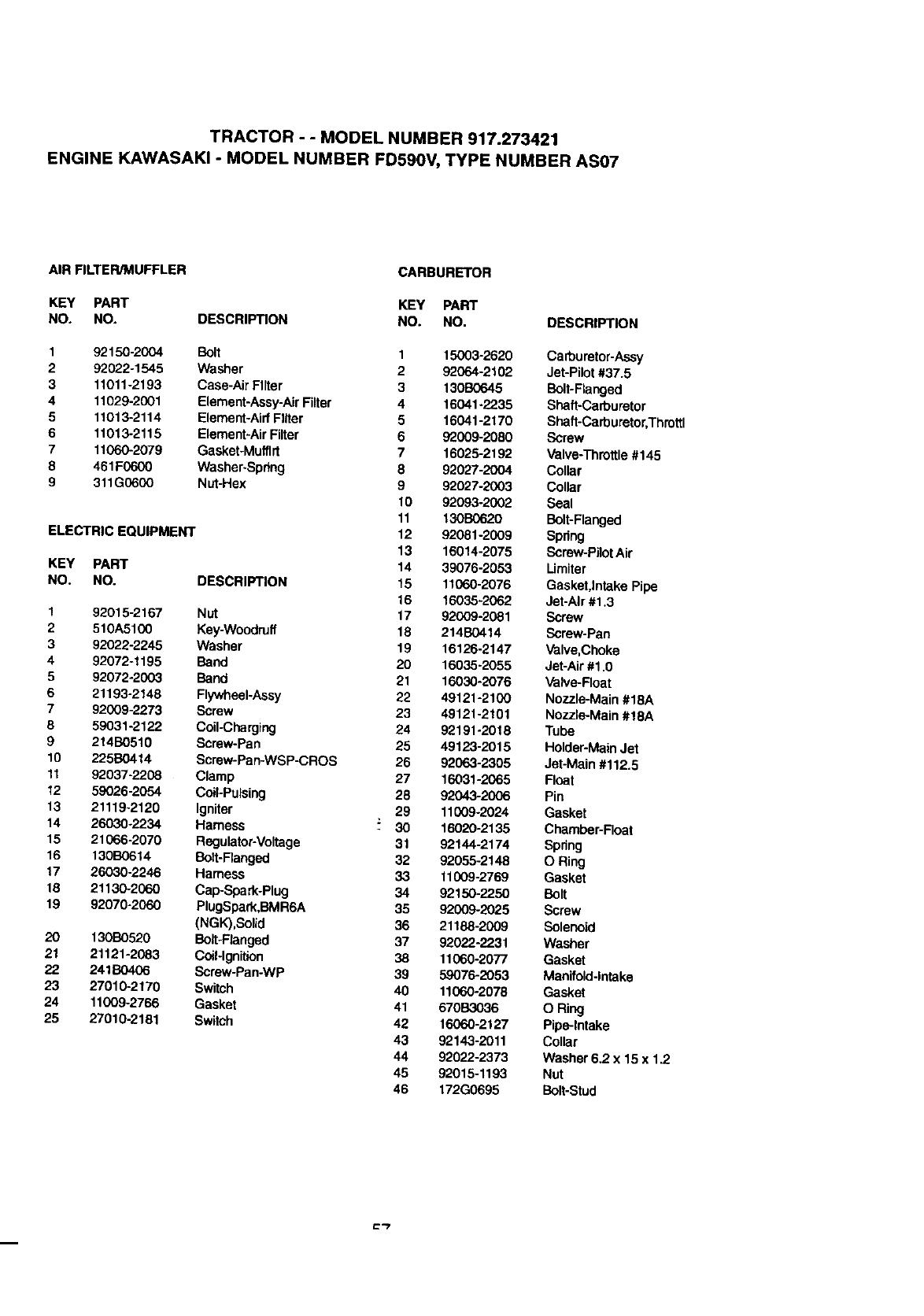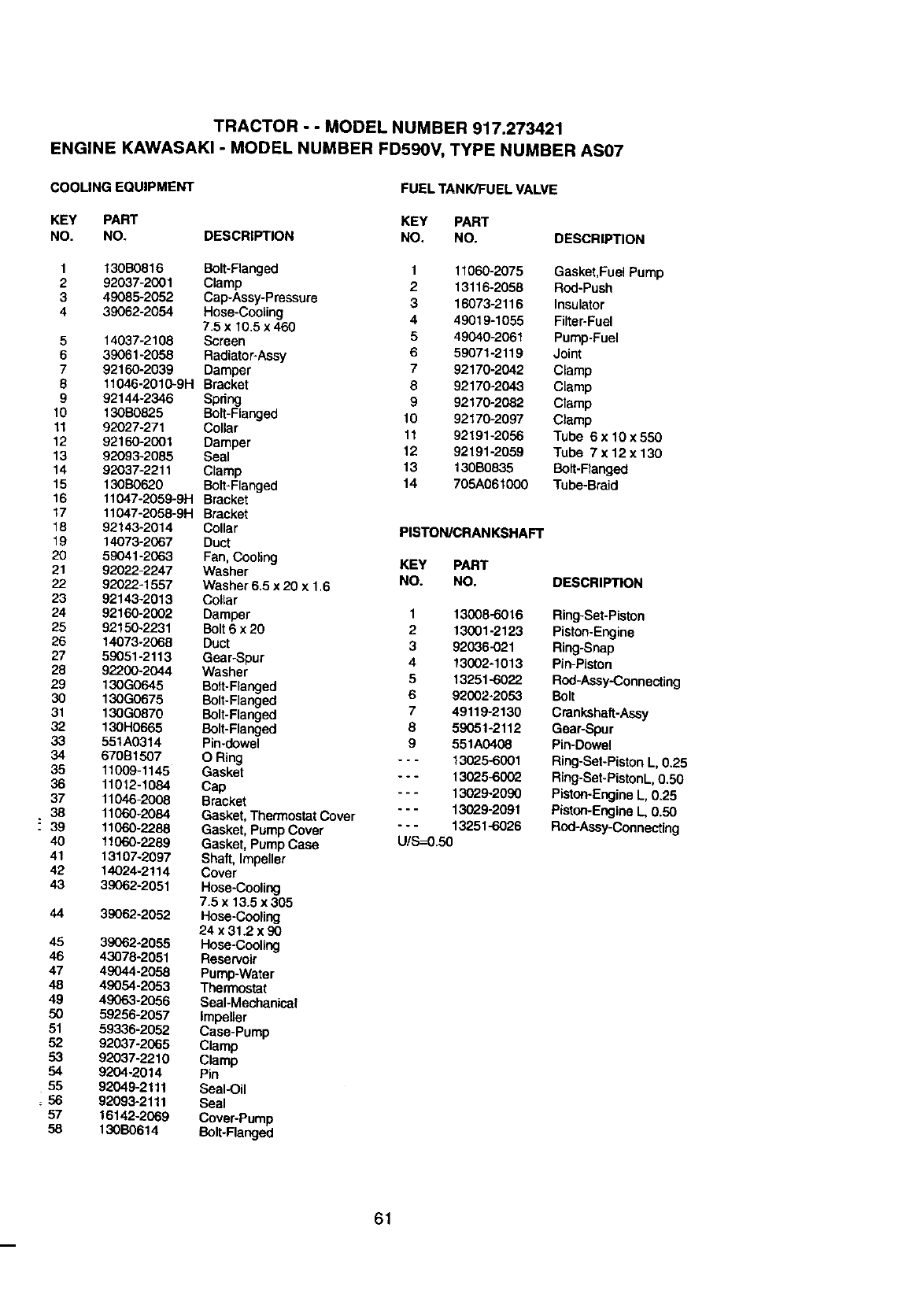 User Manual: Craftsman 917273421 917273421 CRAFTSMAN LAWN TRACTOR - Manuals and Guides View the owners manual for your CRAFTSMAN LAWN TRACTOR #917273421. Home:Lawn & Garden Parts:Craftsman Parts:Craftsman LAWN TRACTOR Manual