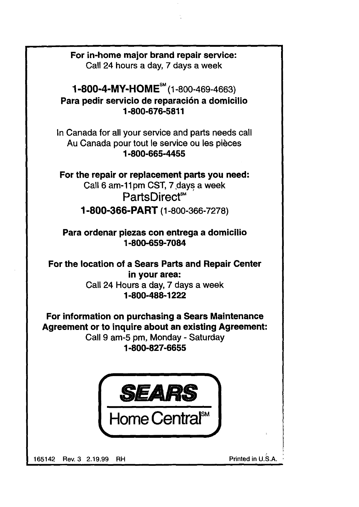 165142 Rev. 3 2.19.99 RH Printed in U.S.A.