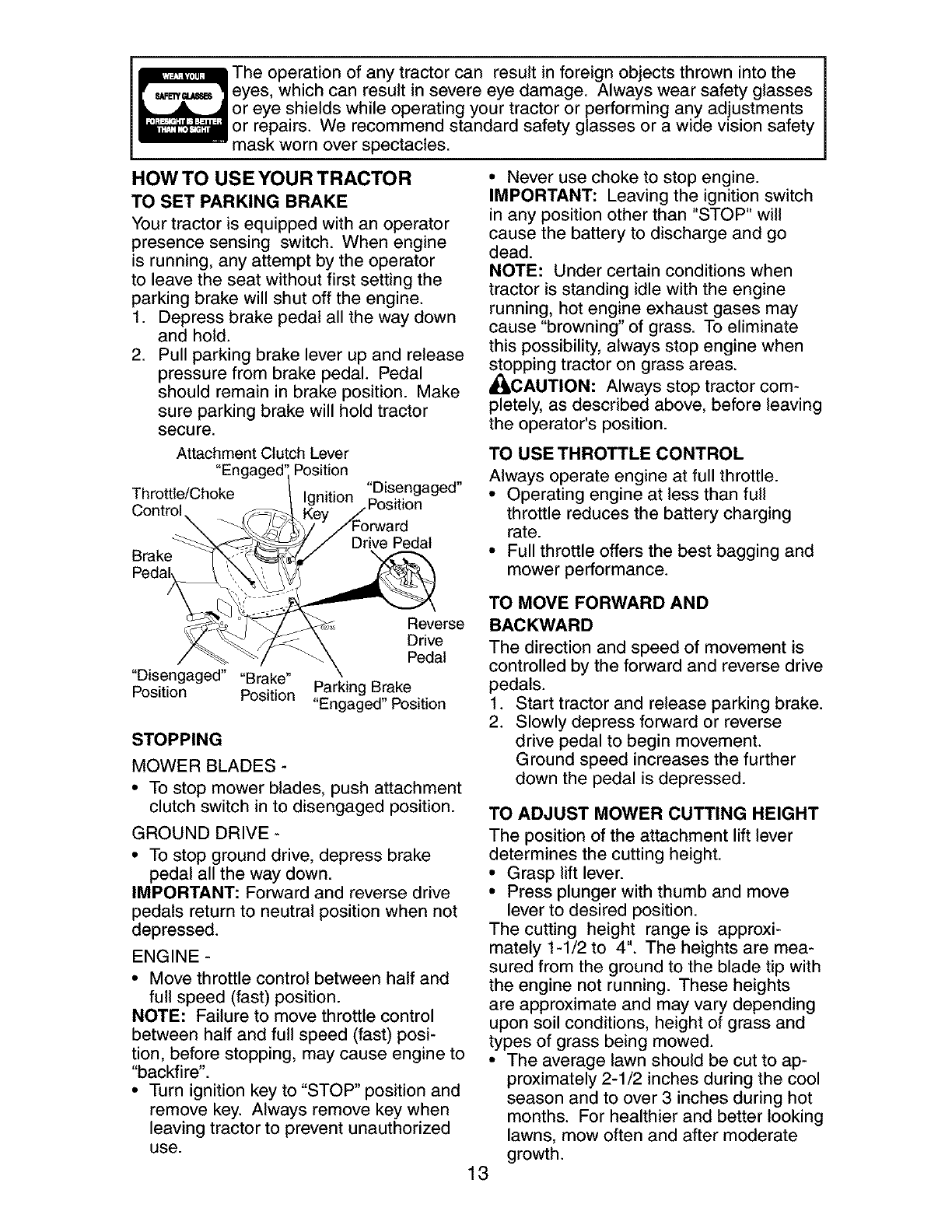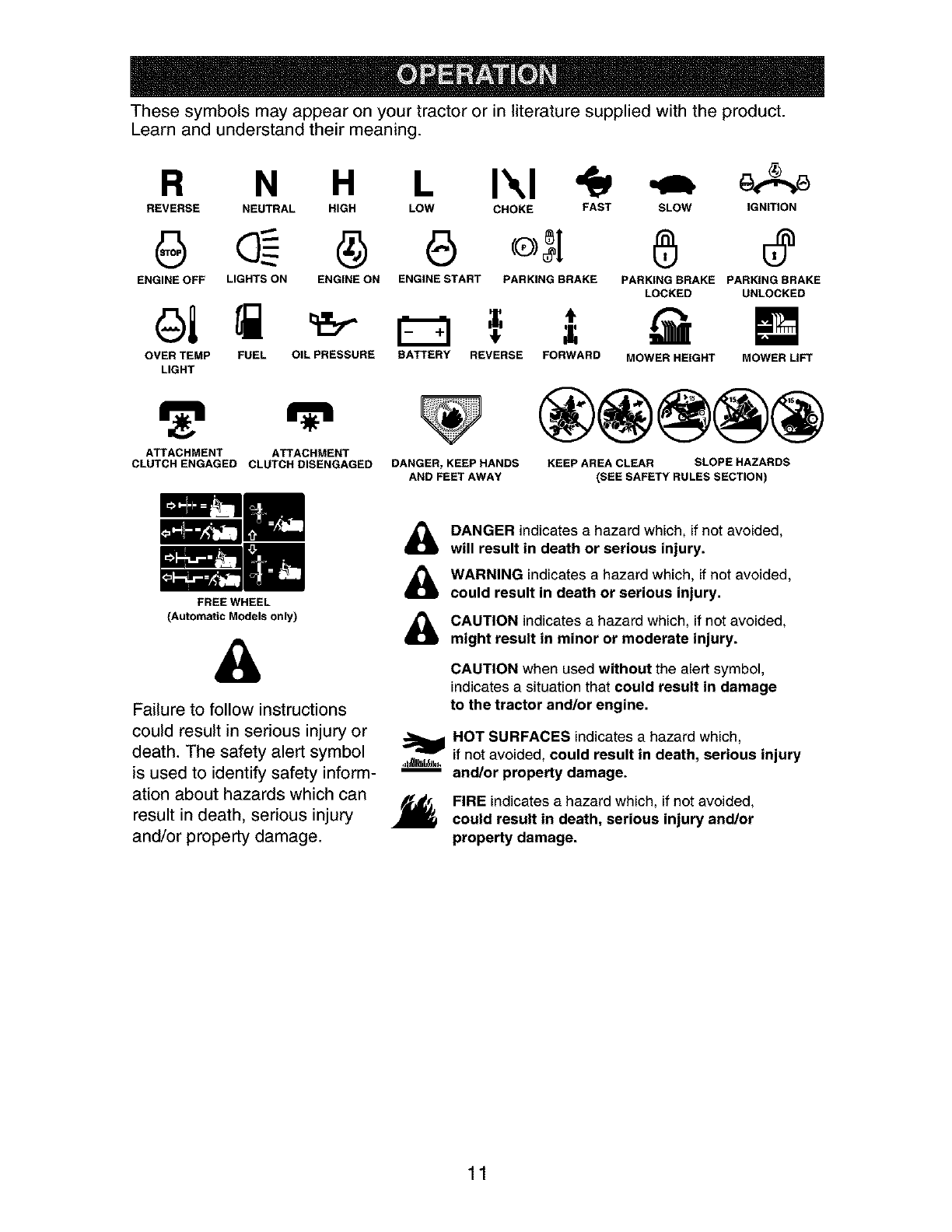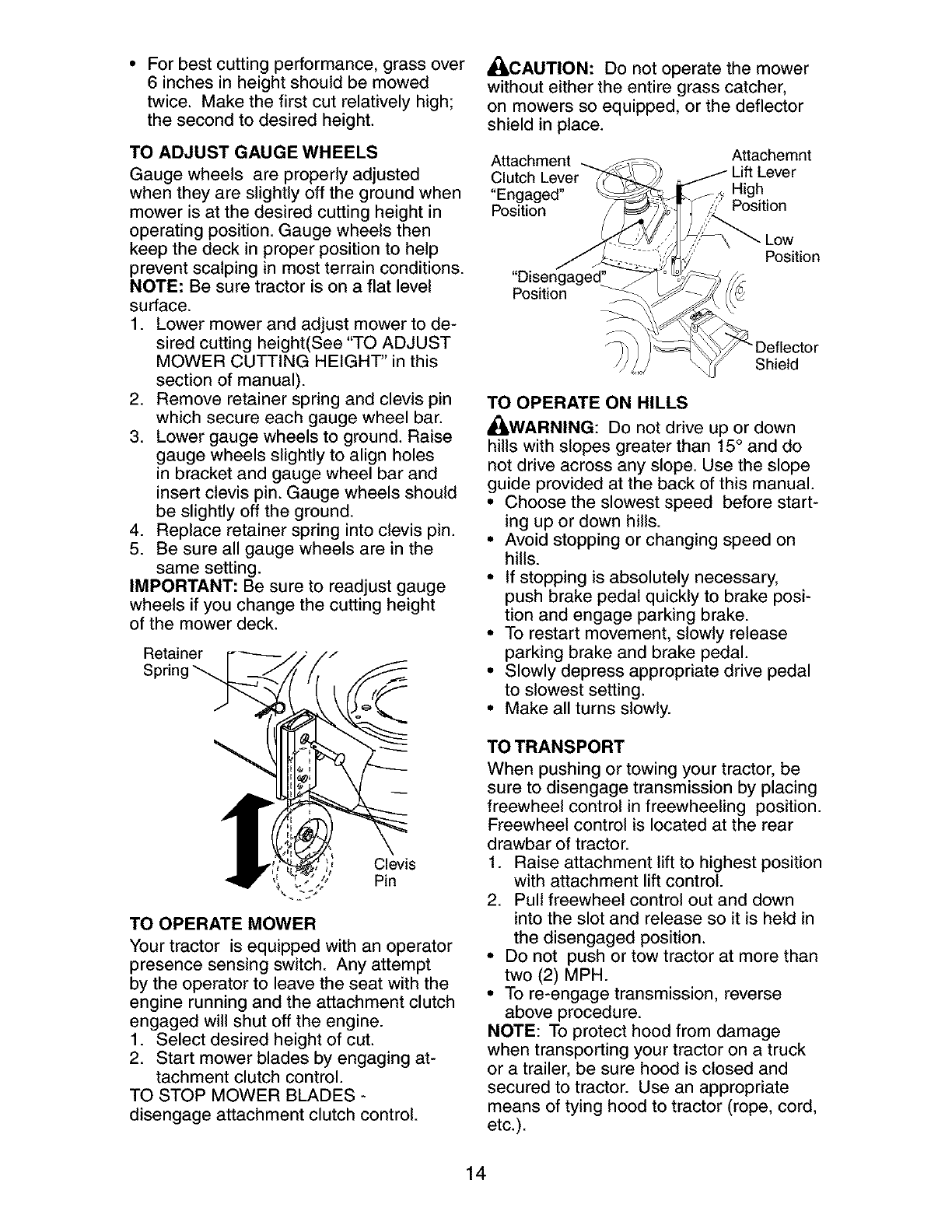 _ARNING: To avoid serious injury, operate your tractor up and
