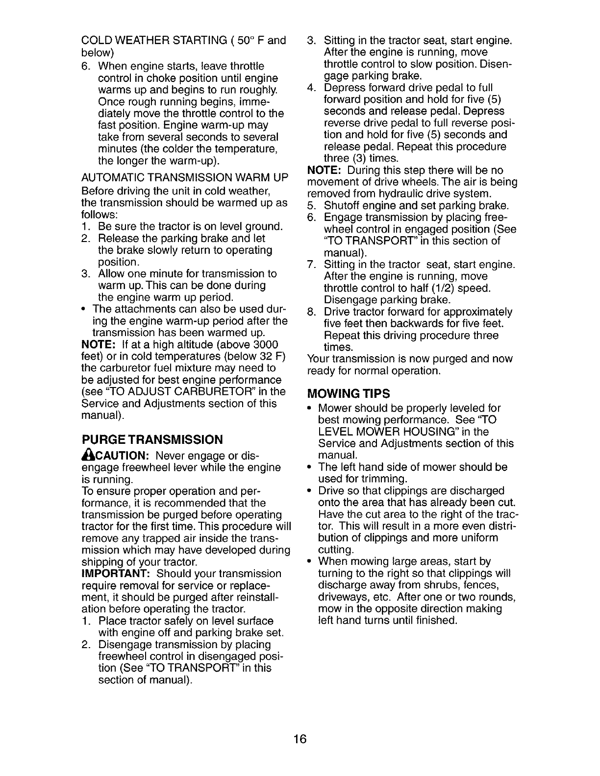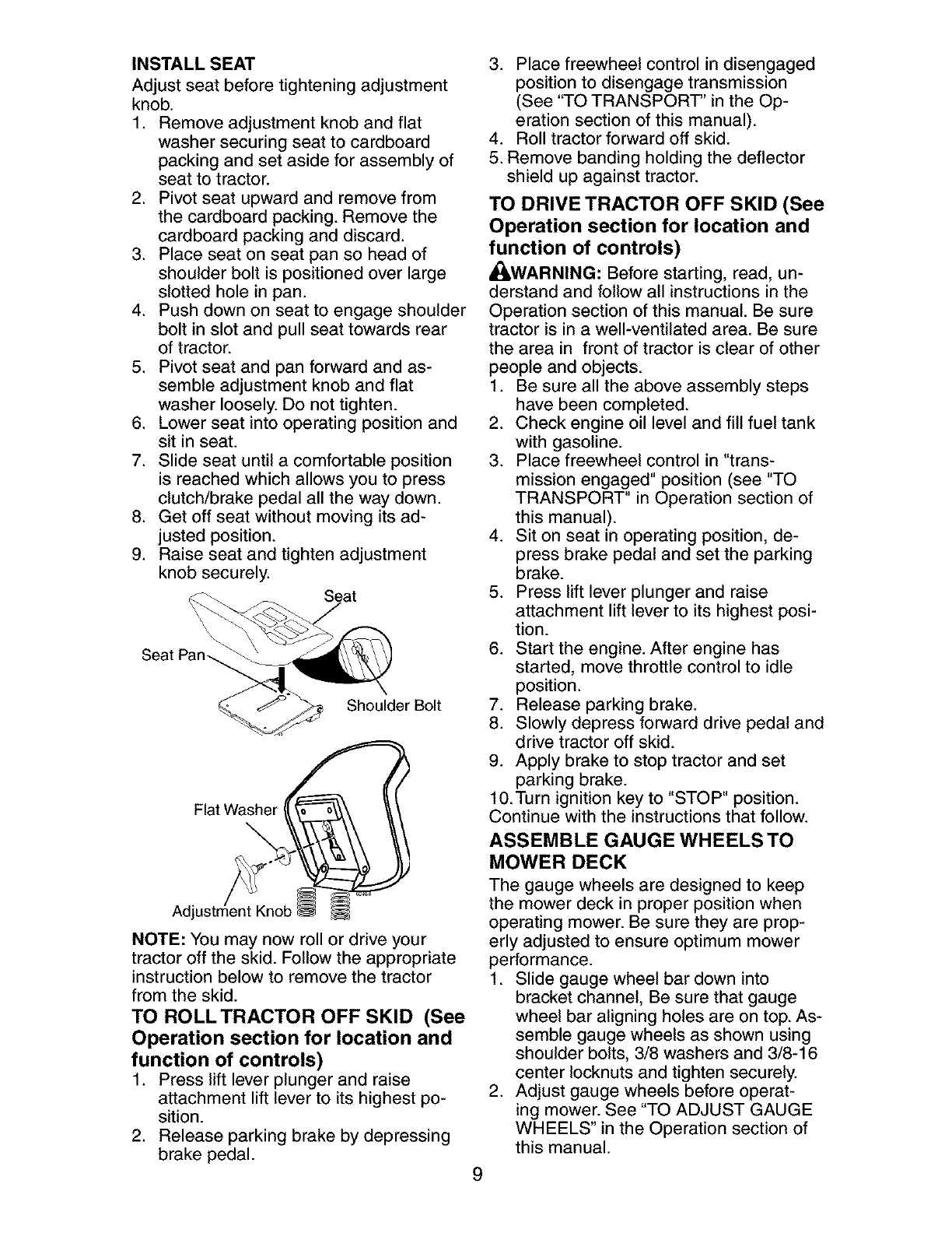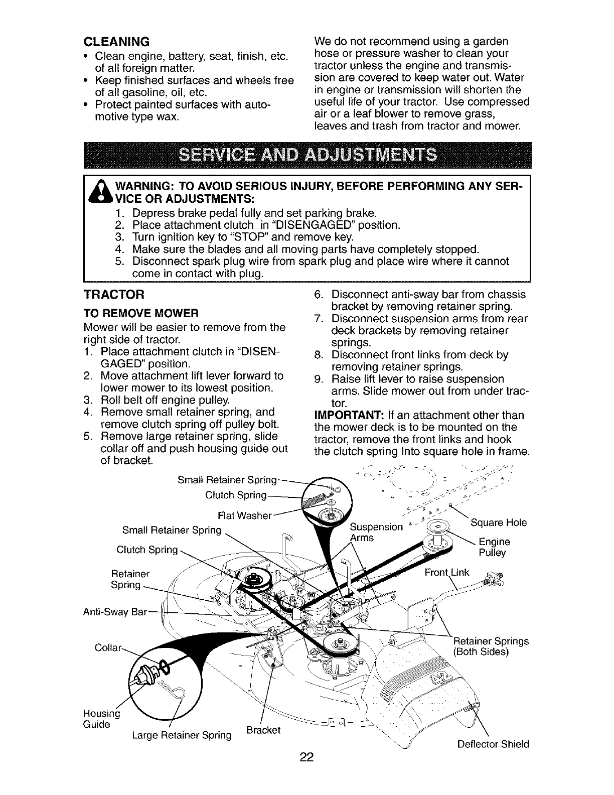 _ARNING: To avoid serious injury, operate your tractor up and