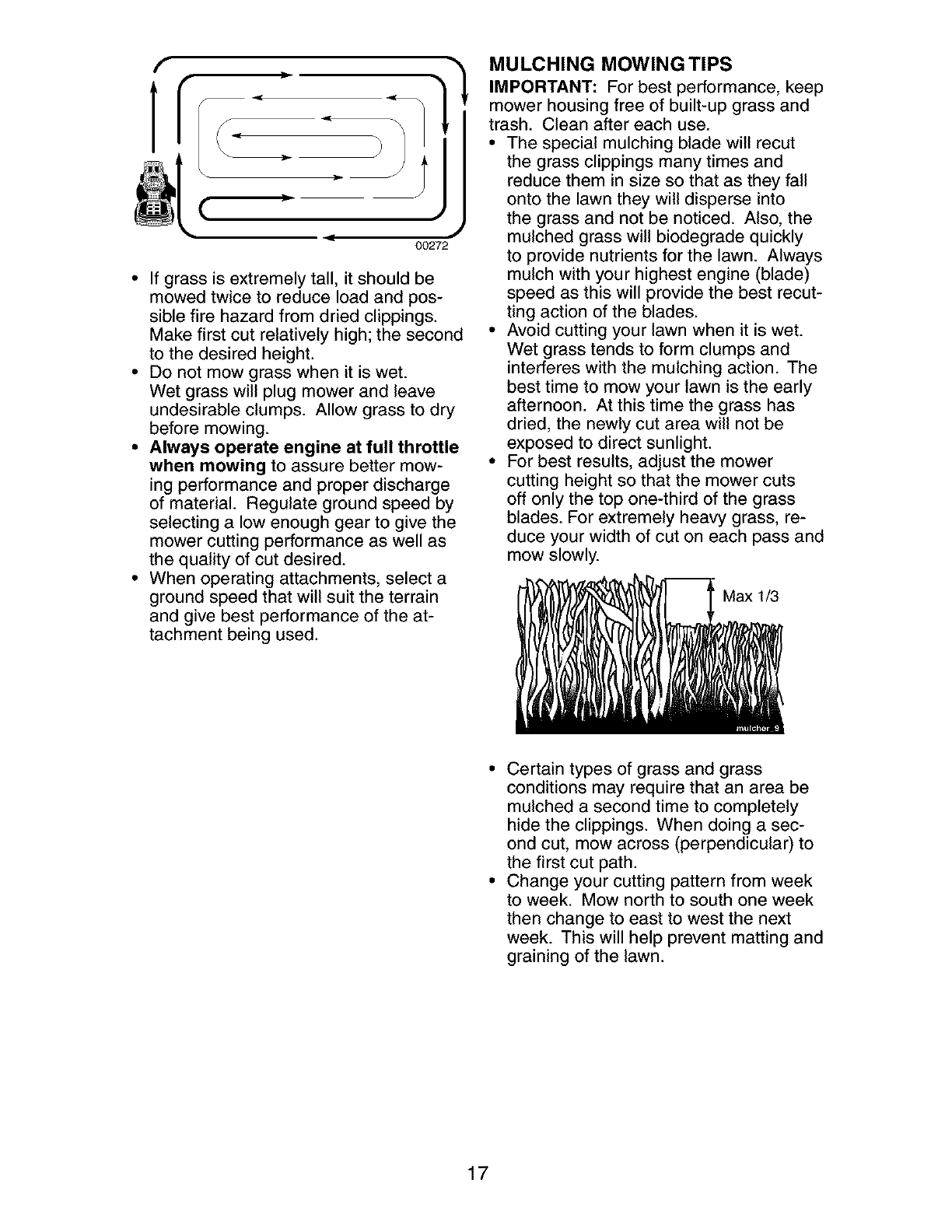 grade and amount of engine oil, failure to keep the deck clear of flammable debris,