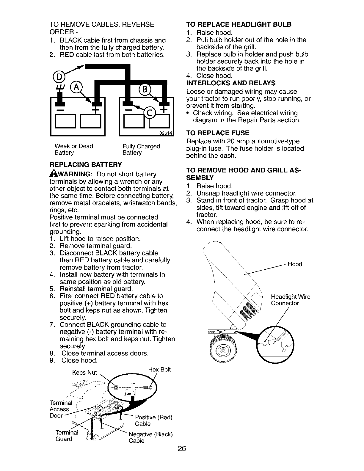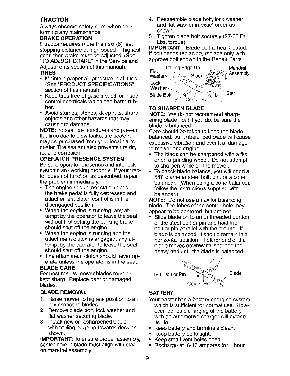 battery will not hold a charge, Sears will replace the battery at no charge. During the