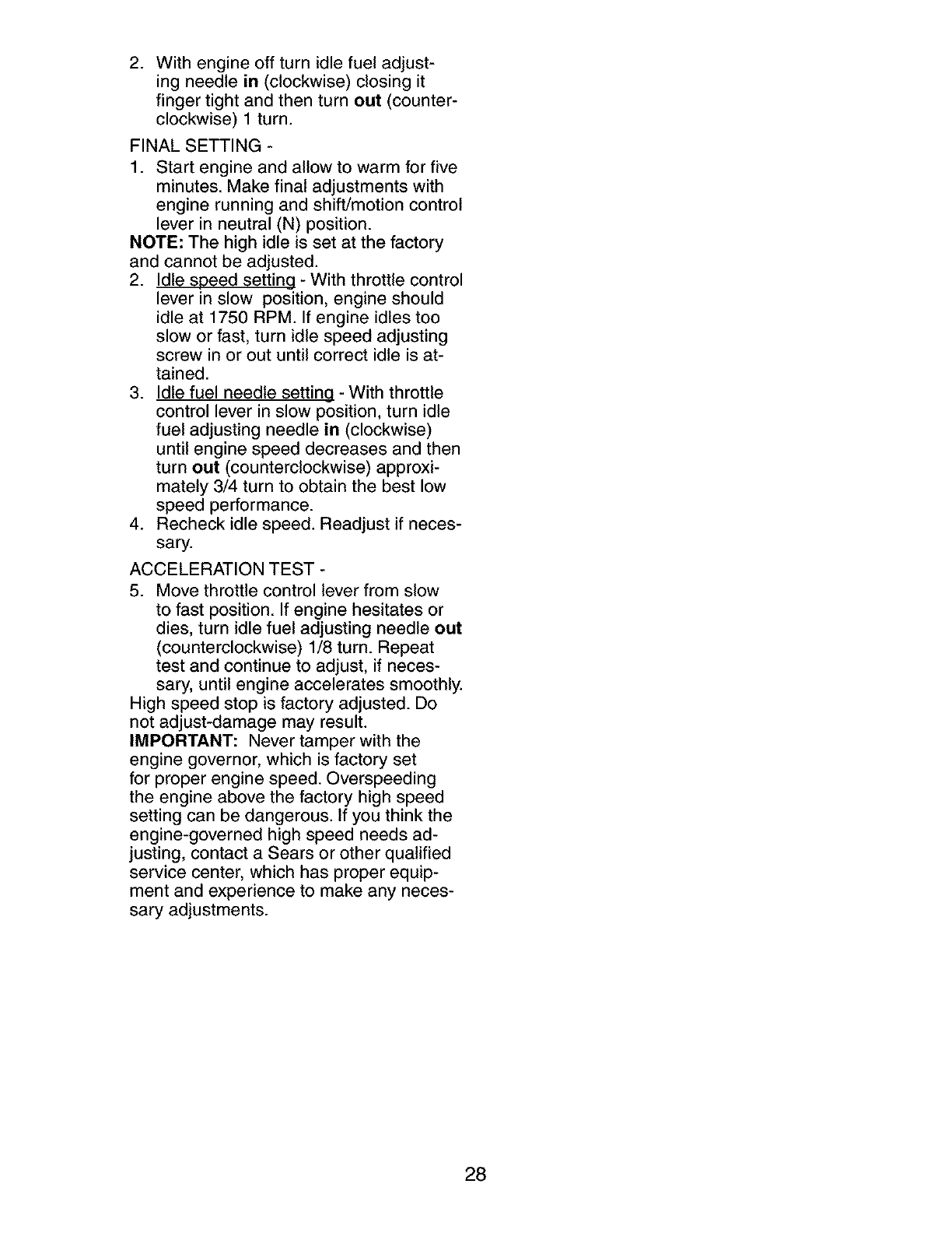 maintained, lubricated and tuned up according to the instructions in the owner's manual,
