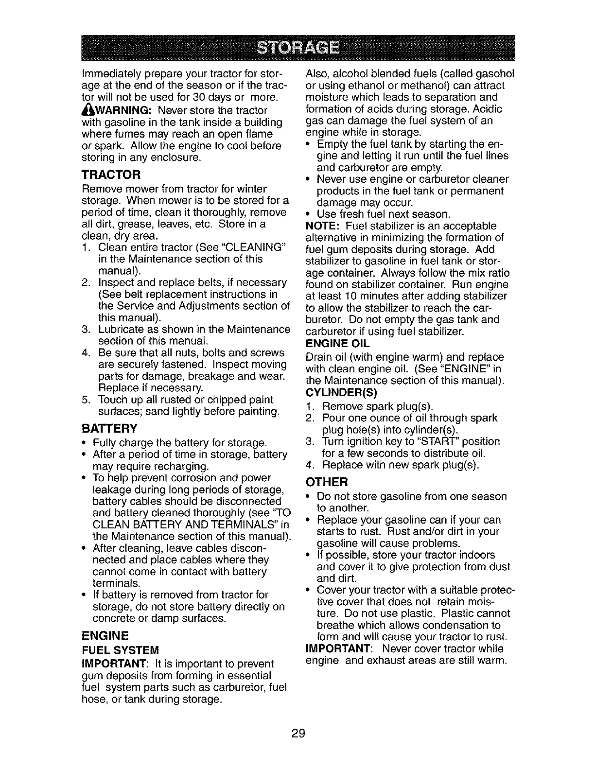 nated or oxidized (stale). In general, fuel should be used within 30 days of its pur-