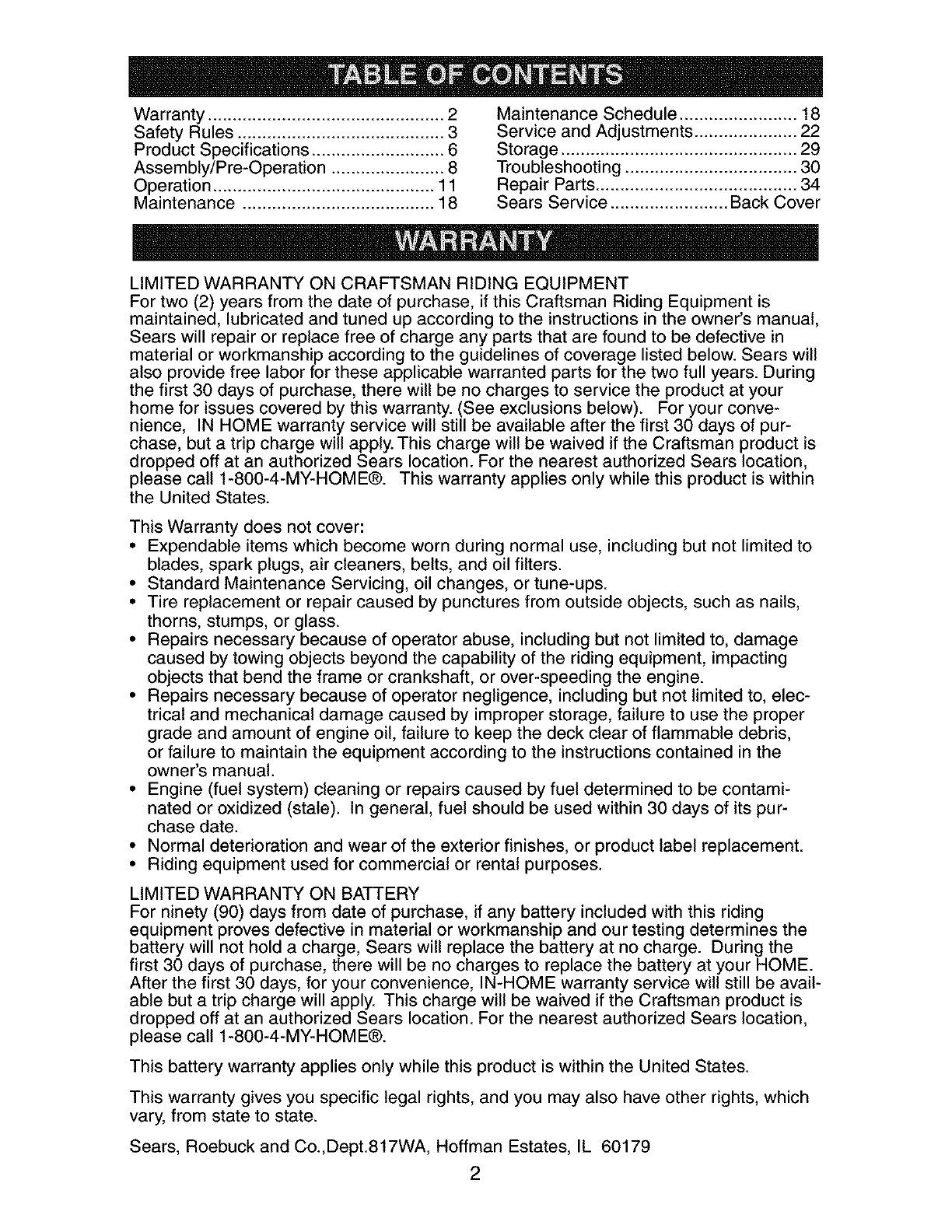 LIMITED WARRANTY ON CRAFTSMAN RIDING EQUIPMENT