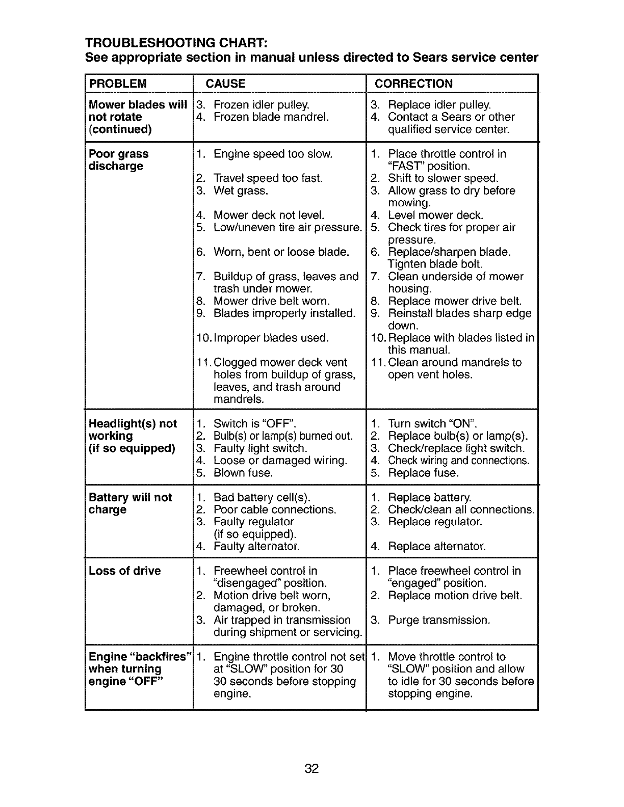 Sears will repair or replace free of charge any parts that are found to be defective in