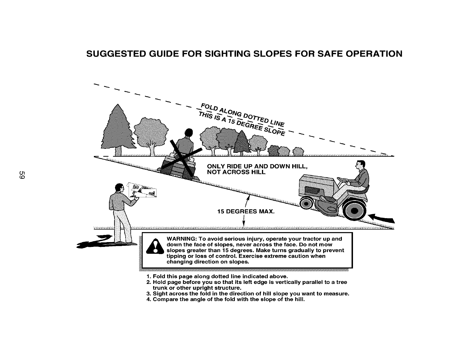 slopes greater than 15 degrees. Make turns gradually to prevent