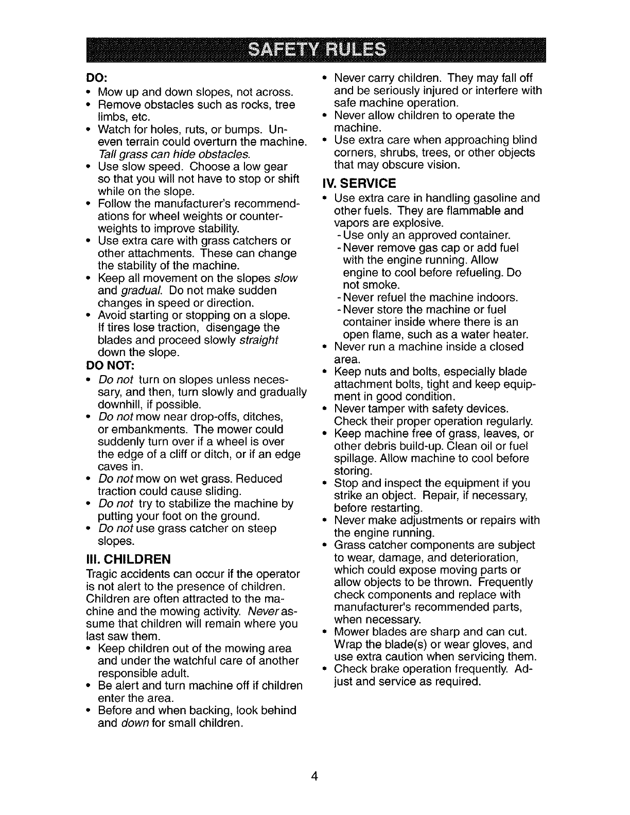 Safety Rules .......................................... 3 Service and Adjustments ..................... 22