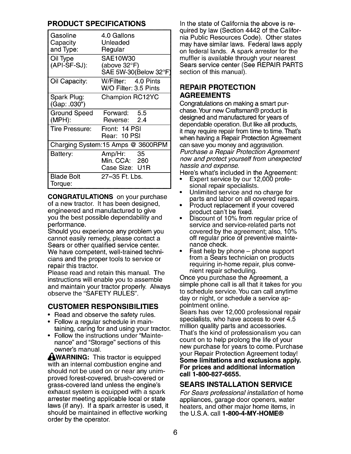 Sears Craftsman Help Line