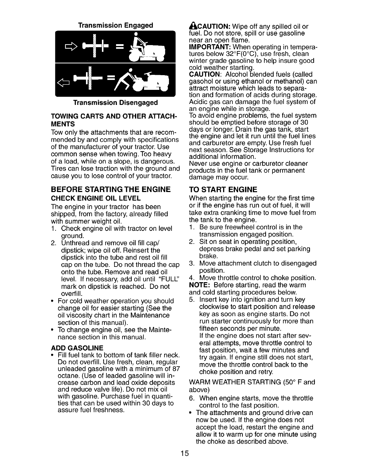 tractor. Use common sense when towing.