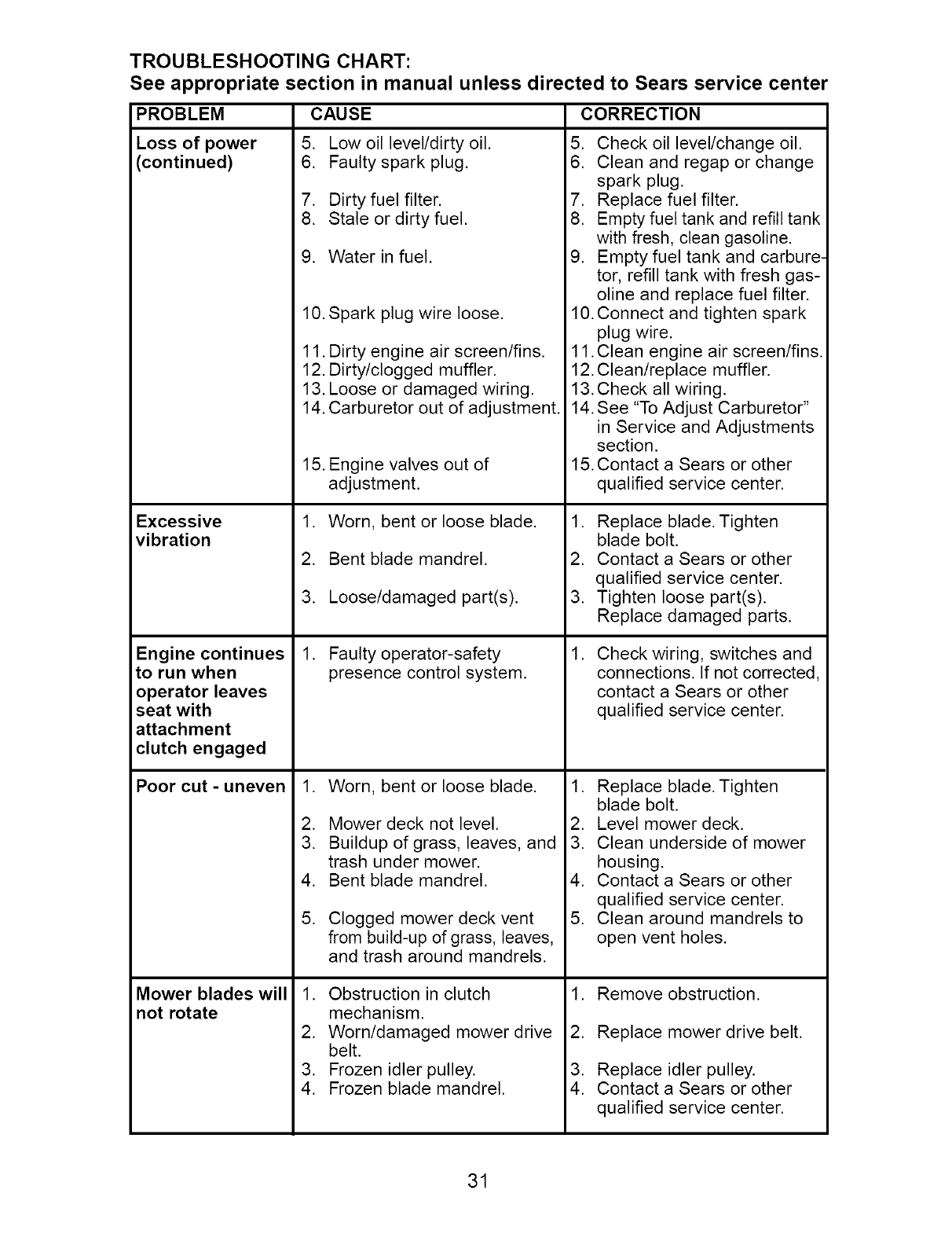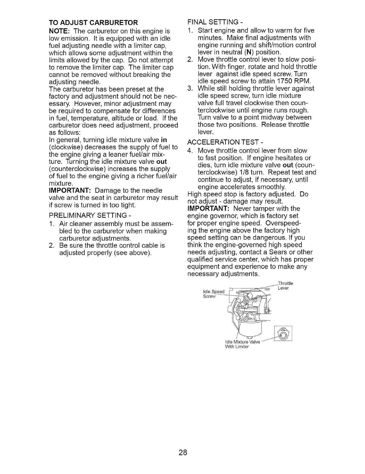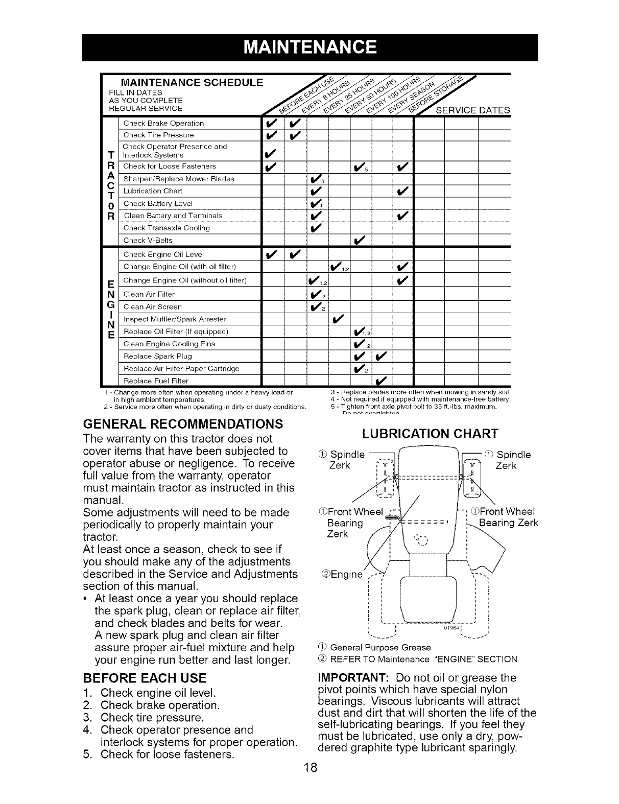 maintained,lubricatedand tuned up accordingto the instructionsin the owner'smanual,