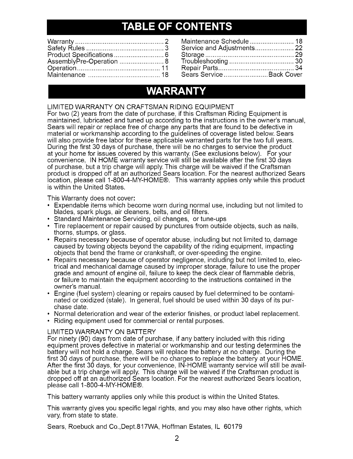 For two (2) yearsfrom the date of purchase,if this CraftsmanRiding Equipmentis